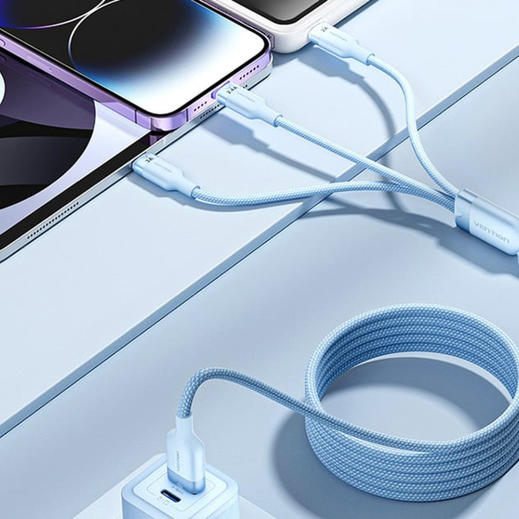 Az USB 2.0 A - 3 az 1-ben 3A Vention CTPLG 1,5M kábel egy sokoldalú megoldás, amely lehetővé teszi, hogy különböző eszközöket töltsön és szinkronizáljon egyetlen kábellel. Három különböző csatlakozóval - Lightning, USB-C és Micro-B - felszerelve tökéletes lesz a modern okostelefonok, valamint a régebbi eszközök, például powerbankok és fényképezőgépek töltésére.