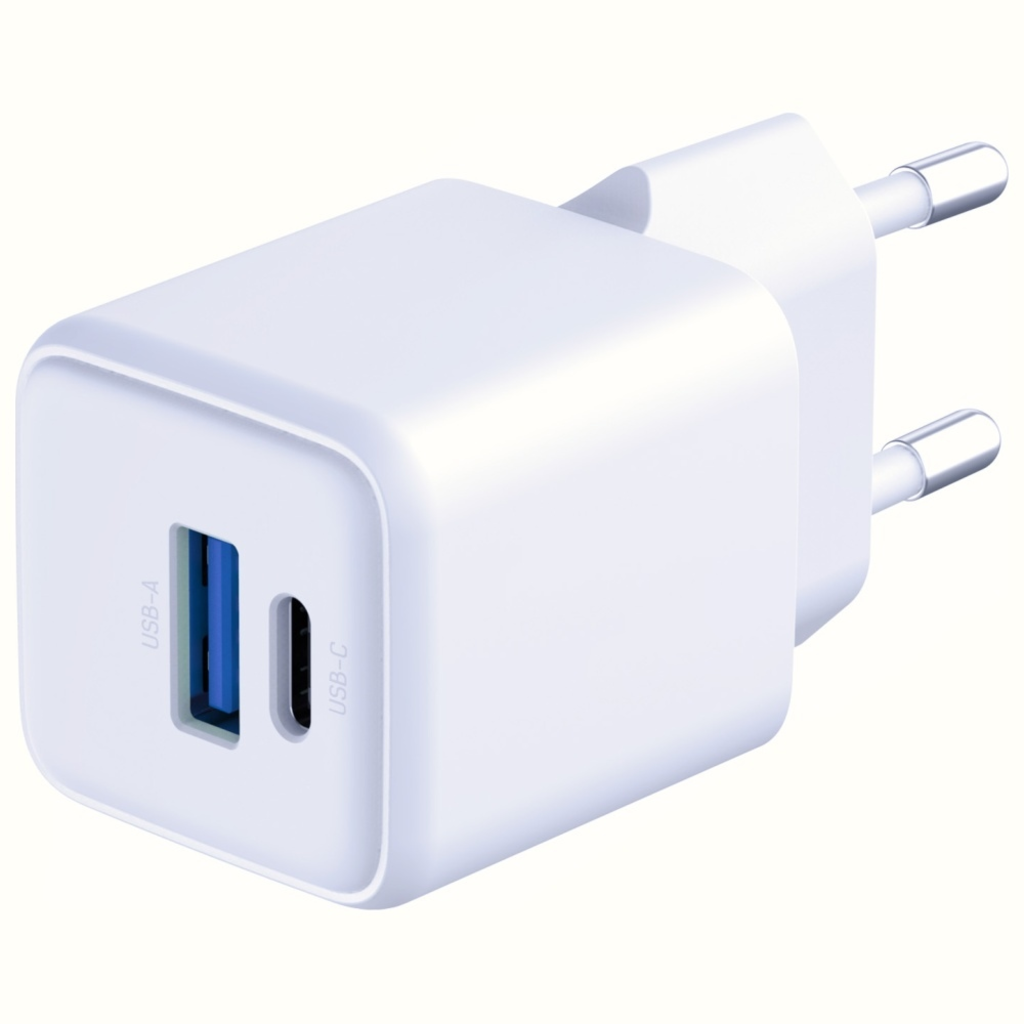 A GaN technológiának köszönhetően a Hyper GaN PD Charger 20W™ mérete közelebb áll egy 1 eurós érme méretéhez, mint egy hagyományos fali töltőéhez. Könnyen elfér egy kabátzsebben vagy egy kis hátizsák rekeszében. Bárhová magaddal viheted. A GaN technológia lehetővé tette a hatékonyság növelését a töltő méretének csökkentése mellett. Két USB port áll rendelkezésre: 1x USB-A és 1x USB-C, melyek lehetővé teszik két hordozható eszköz egyidejű töltését.