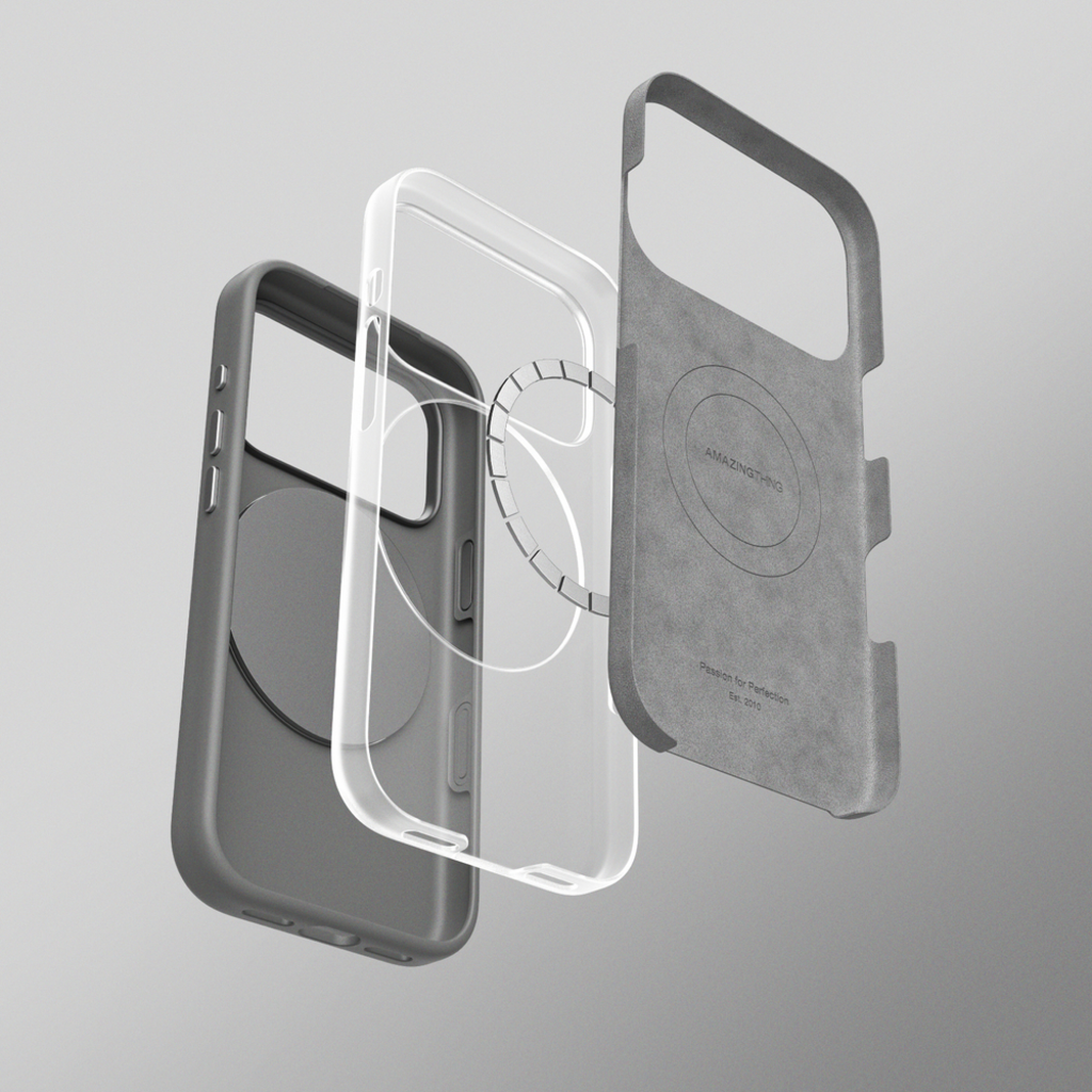 AmazingThing Cloudie iPhone 17 Pro tok állvánnyal - Szürke tok
