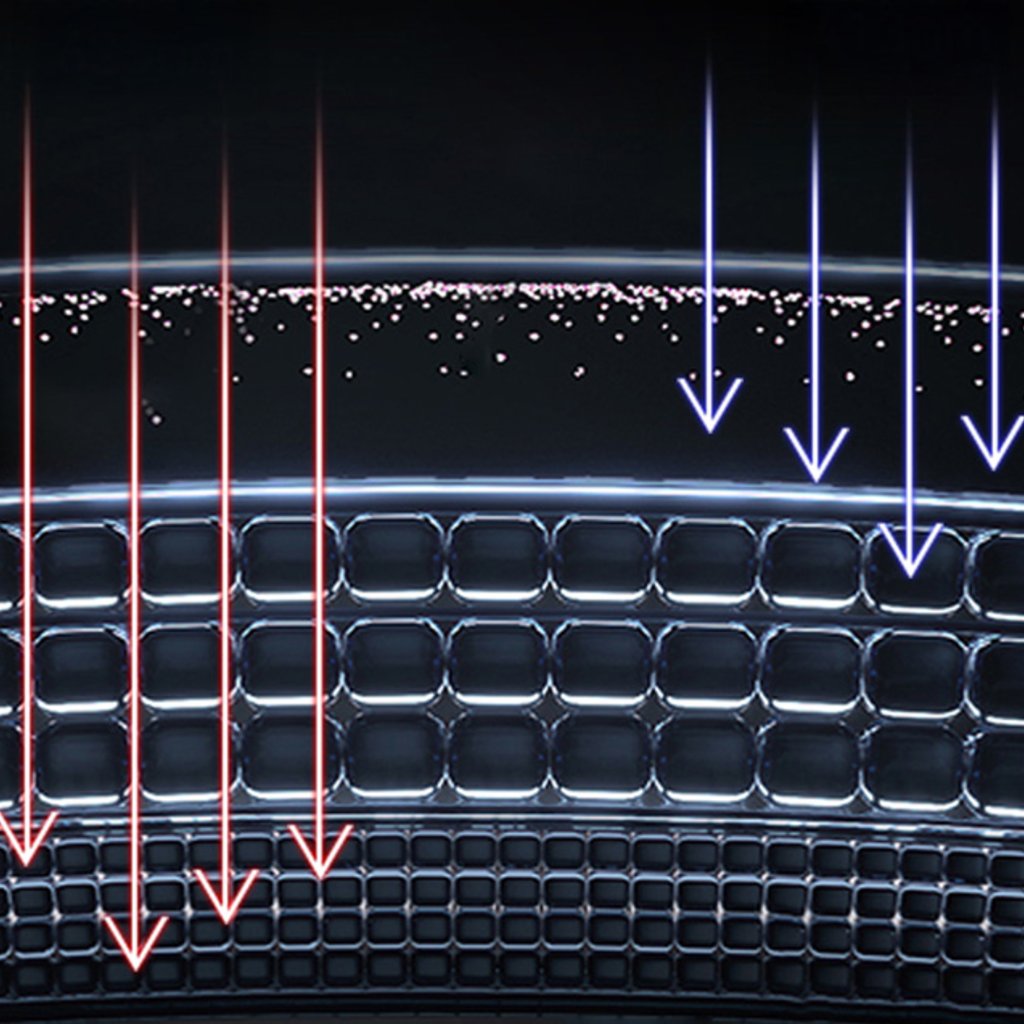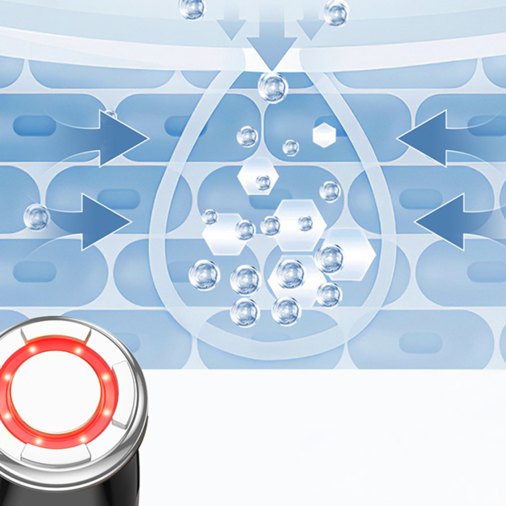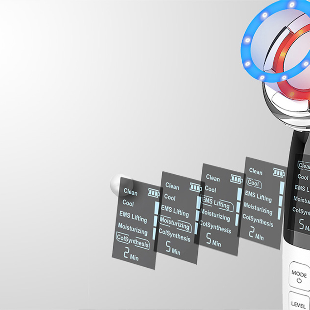 Használja ki a fényterápia előnyeit: A masszírozó készülék vörös vagy kék fénnyel dolgozhat a bőrön. A vörös fény növeli a bőr rugalmasságát, megelőzi a ráncosodást, míg a kék fény eltávolítja a baktériumokat, fertőtlenít és tisztít.
