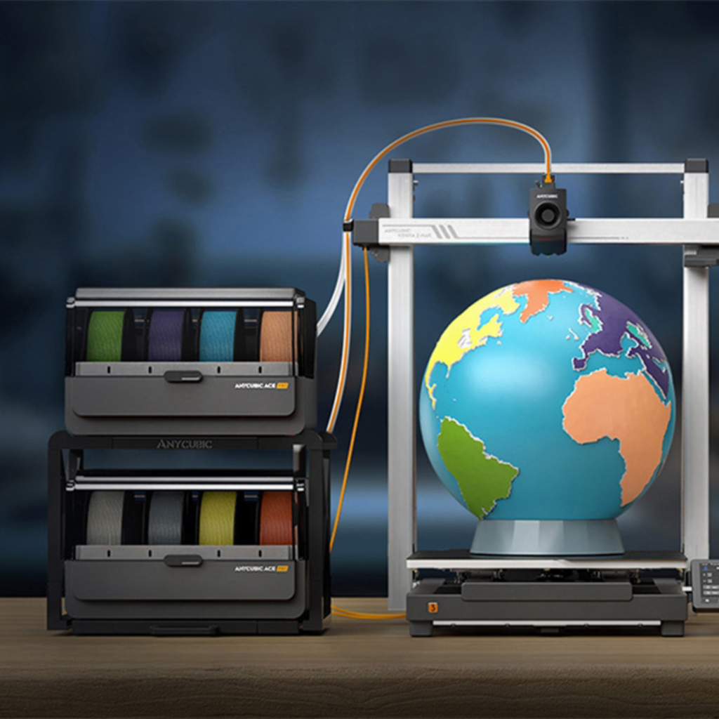 Az ACE Pro a Combo változat egyik legfontosabb jellemzője, hogy akár 8 színben is tud egyszerre nyomtatni, köszönhetően két ACE Pro rendszer összekapcsolhatóságának. Ez az intelligens megoldás automatikusan kezeli a filamenteket, pontosan cserélve azokat menet közben, így nincs szükség manuális anyagcserére. Emellett fejlett filament dobozként is szolgál, figyelve azok tárolási körülményeire. A beépített szárítórendszer megvédi az anyagot a nedvességtől, ami javítja a nyomtatási minőséget és csökkenti a nyomtatás közbeni problémák kockázatát.