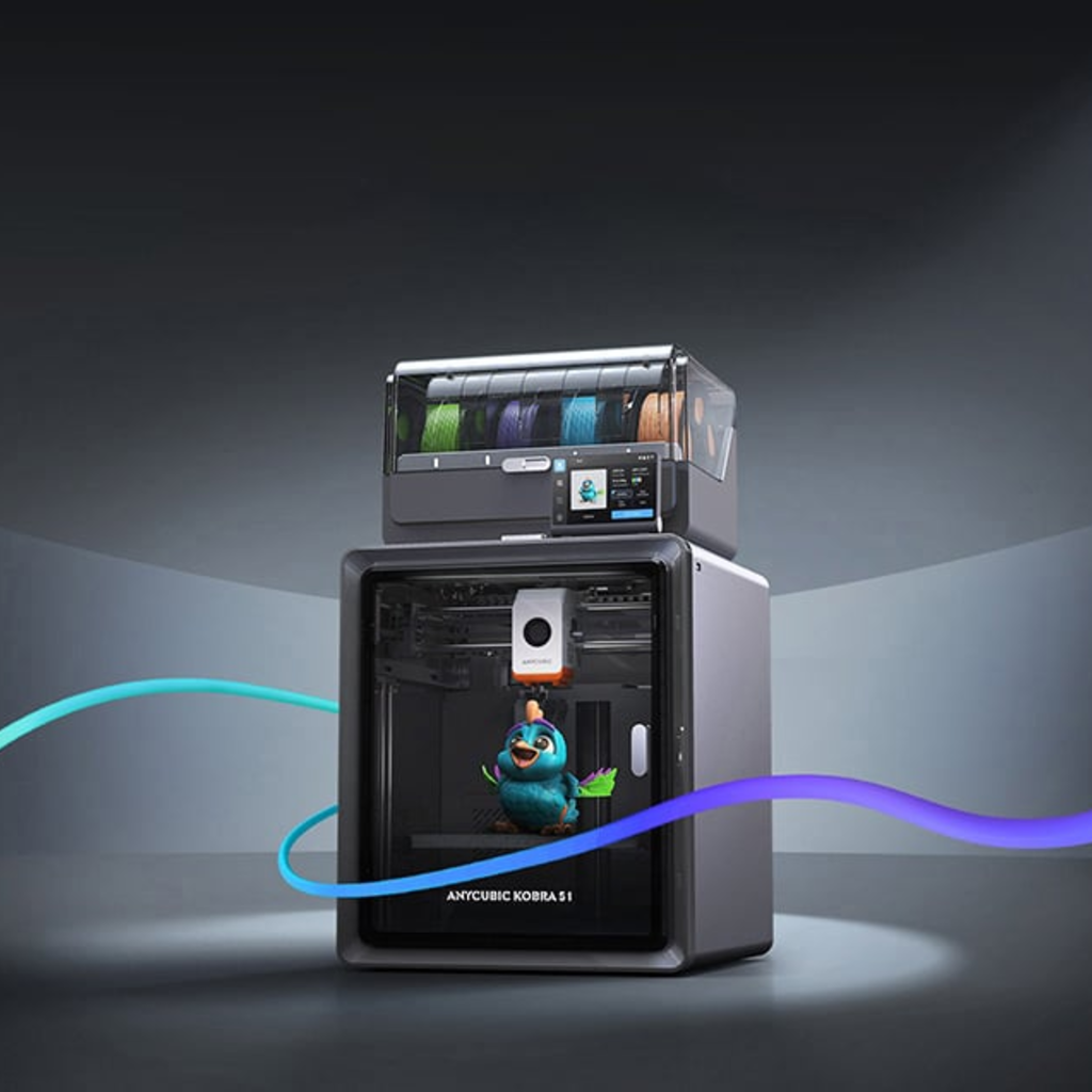 Az Anycubic Kobra S1 Combo változatával az innovatív 4 cellás filamenttartálynak köszönhetően egyszerre több színben is nyomtathat. Ez a megoldás lehetővé teszi, hogy összetettebb és vizuálisan vonzóbb terveket hozzon létre anélkül, hogy menet közben kézzel kellene cserélnie az anyagot. A filamentek közötti automatikus váltás biztosítja a simaságot és a pontosságot, így ez a nyomtató ideális választás azok számára, akik a kreativitás és az esztétikum következő szintjére szeretnék emelni a terveiket.