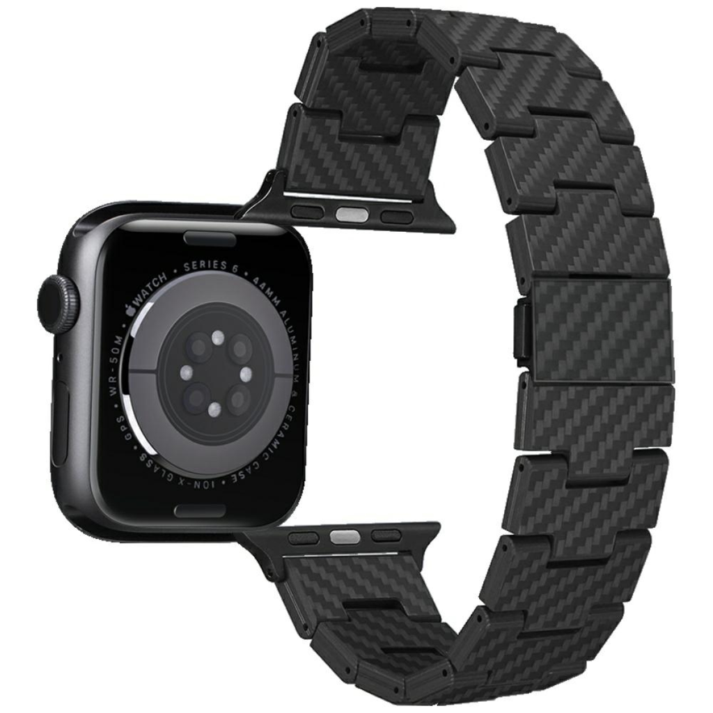 Apple Watch 1/2/3/4/5/6/7/8/9/10/SE/Ultra/Ultra2 PITAKA Carbon Fiber Retro szíj fekete-szürke (42/44/45/46/49mm)
