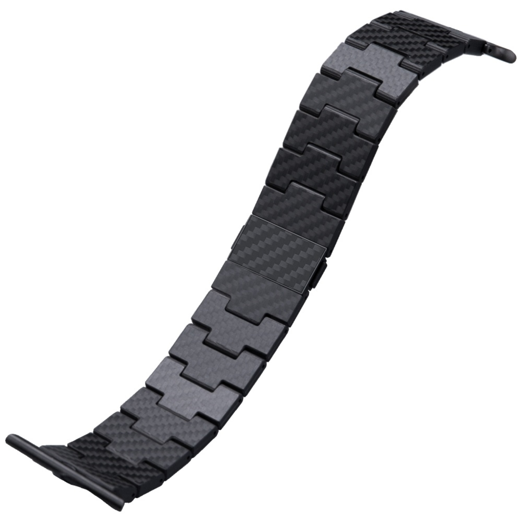 A karbon szál ismert a repülőgép- és autóiparban való felhasználásáról, köszönhetően erősségének és könnyűségének. A PITAKA szíjban ez az anyag modern formát ölt, karc- és korrózióálló. A gondos feldolgozásnak köszönhetően az egyes láncszemek simák és bőrbarátok, nem melegszenek fel, és nem okoznak kényelmetlenséget edzés vagy alvás közben sem. A szálak jellegzetes szövése modern és elegáns megjelenést ad a szíjnak, amely kiemeli azt a standard szíjak közül.