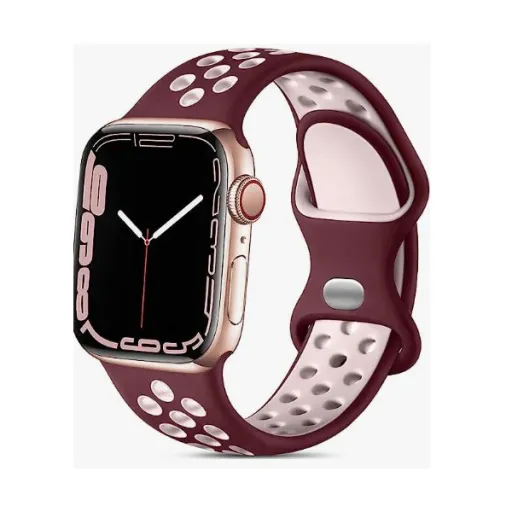 Apple Watch 1/2/3/4/5/6/7/8/9/SE (38/40/41mm) TRPH szilikon óraszíj bordó-rózsaszín