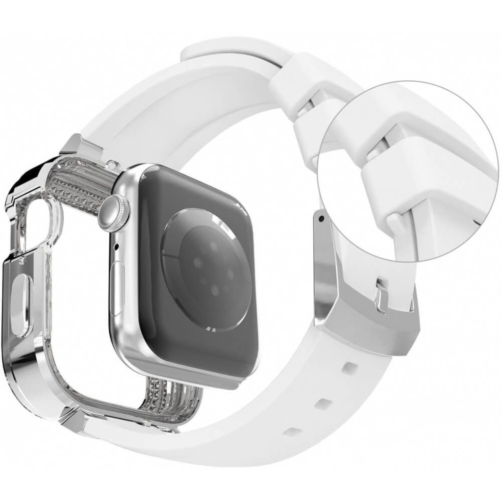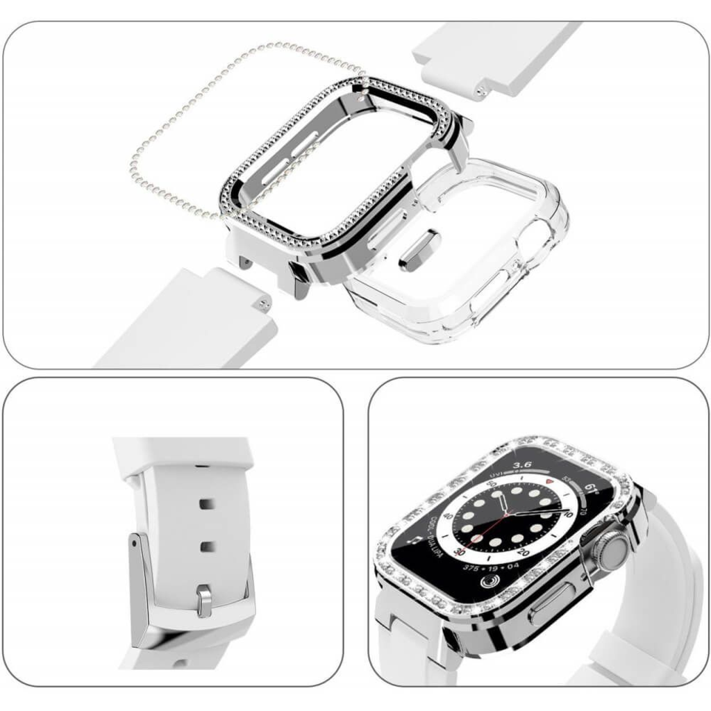 Apple Watch 2/3/4/5/6/7/8/9/SE 40/41/38mm Kingxbar Strarry óraszíj tokkal fehér