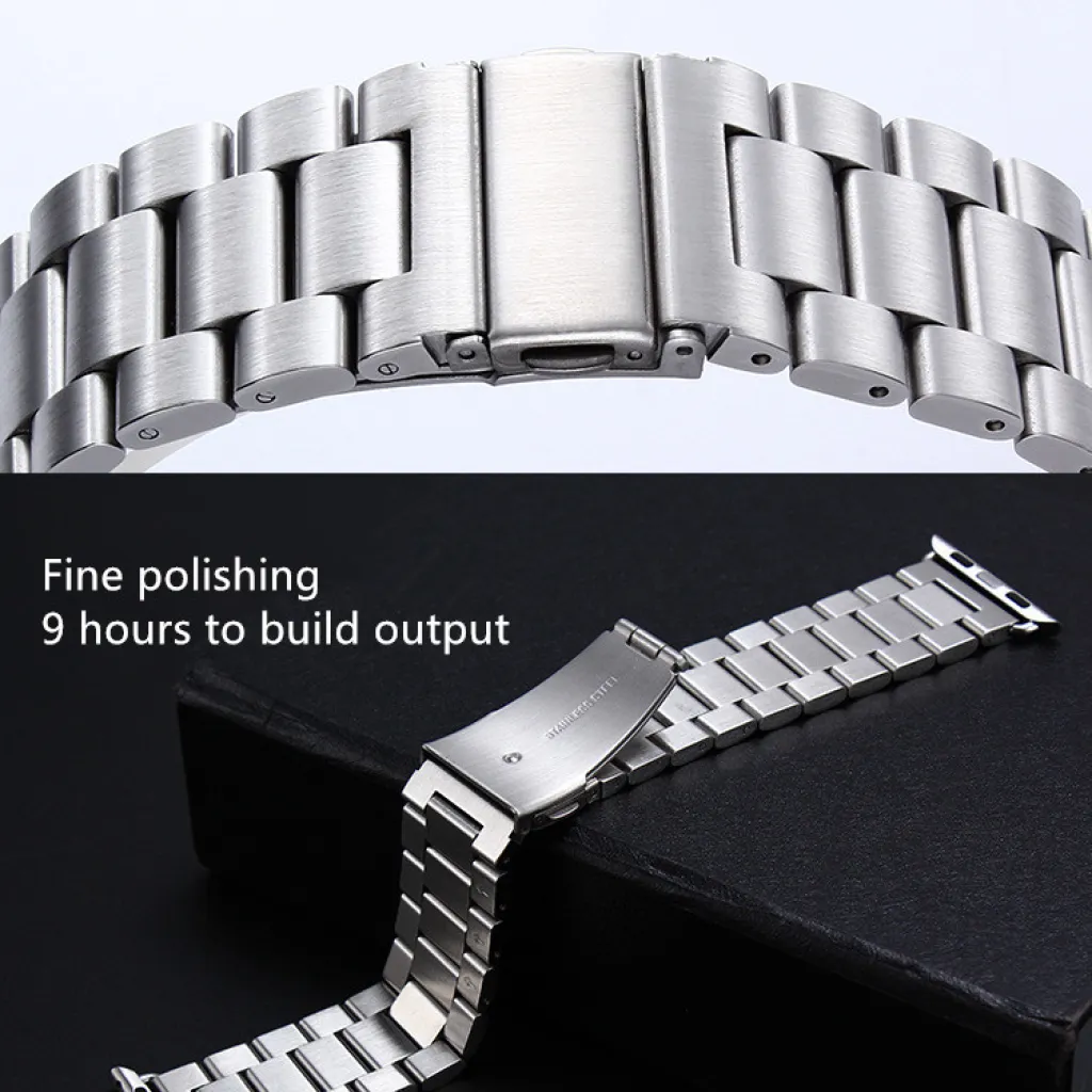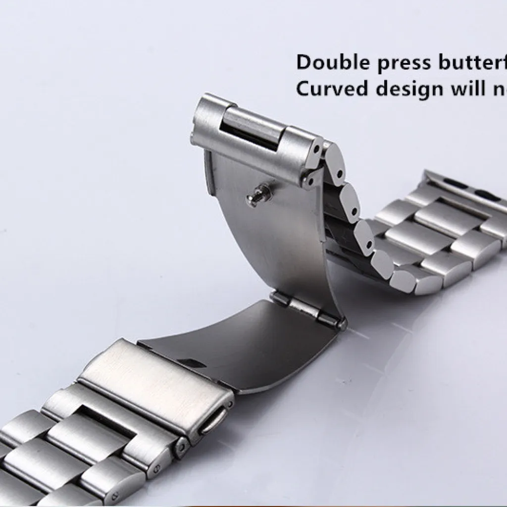 Rozsdamentes acélból készült Apple Watch óraszíj. Elegáns megjelenés, kényelmes viseletet biztosít. Pillangó csat.