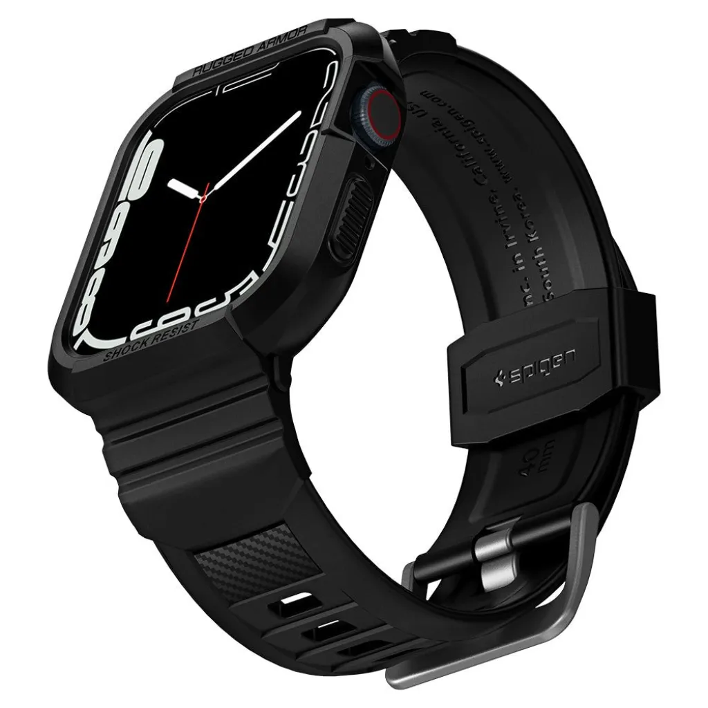 Apple Watch 4 / 5 / 6 / 7 / 8 / SE (40 / 41 mm) Spigen Rugged Armor Pro szíj és tok fekete