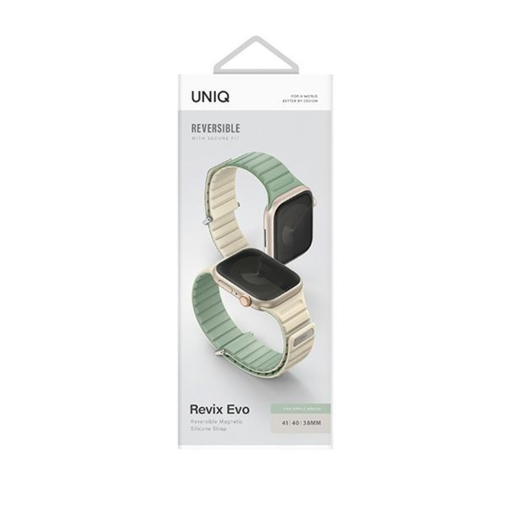 Apple Watch Series 1-9/SE/SE2/SE3 38/40/41 mm UNIQ szíj Revix Evo Mint-Beige Reversible Magnetic