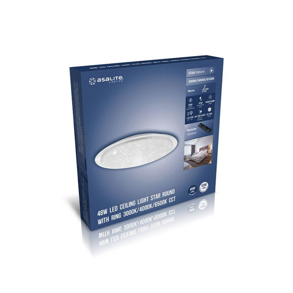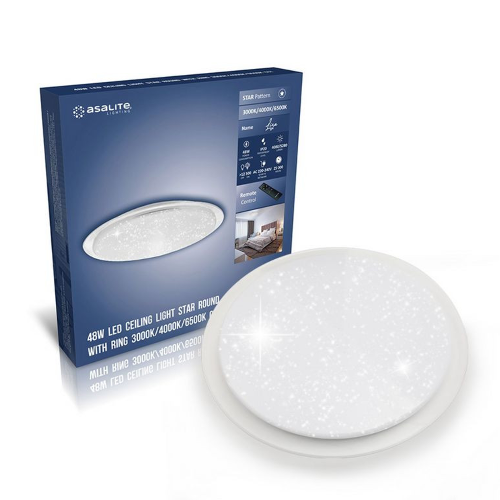 Asalite LED Mennyezeti Lámpa LIZA 48W 3000K/4000K/6500K (4080 lumen) Kerek/Csillagos + Távirányító CCT