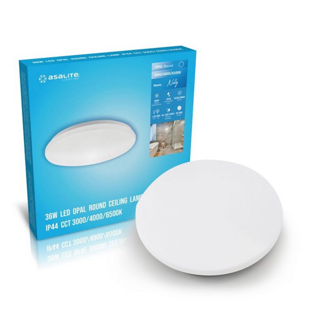 Az Asalite LED Mennyezeti Lámpa 36W 3000K/4000K/6500K a 36W teljesítmény mellett 3800 lumen fényerősség elérésére képes. A teret 120°-ban képes bevilágítani, így optimális választás lakókörnyezetünk (fürdőszobák, lépcsőházak, udvarok, teraszok, autó beállók stb.) megvilágítására. A terméket 10000 ki- és bekapcsolásra tervezték.