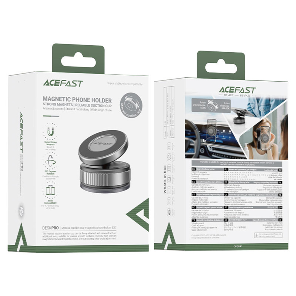 - Erős N52 mágneses rögzítés: Az Acefast E27 az iparágvezető N52 neodímium mágnesekkel van felszerelve, amelyek rendkívül erős és megbízható tartást biztosítanak. Telefonja garantáltan stabilan a helyén marad, még rázós utakon is, elkerülve a leesés veszélyét.