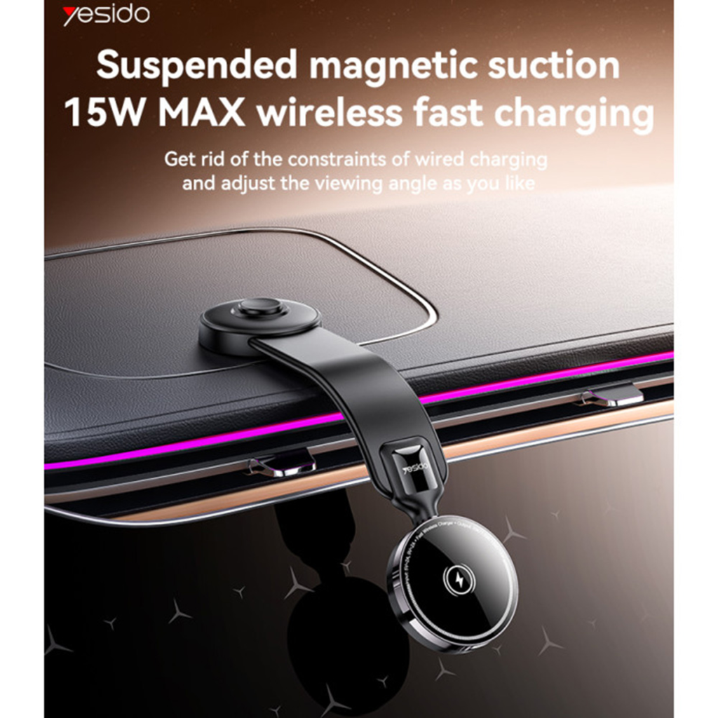 Autós tartó vezeték nélküli töltéssel (Yesido C316) - műszerfalra, N52 mágnesek, rugalmas, intelligens energia szabályozás, 15W - fekete