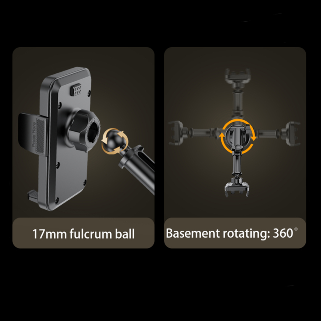 - 360 fokos elforgatás és döntés: Az alap 360 fokban elforgatható, míg a 17 mm-es gömbcsuklós kialakítás lehetővé teszi a telefontartó állvány tetszőleges döntését és szögbe állítását. Így könnyedén beállíthatja a legideálisabb látószöget a navigációhoz, zenehallgatáshoz vagy kihangosított hívásokhoz.