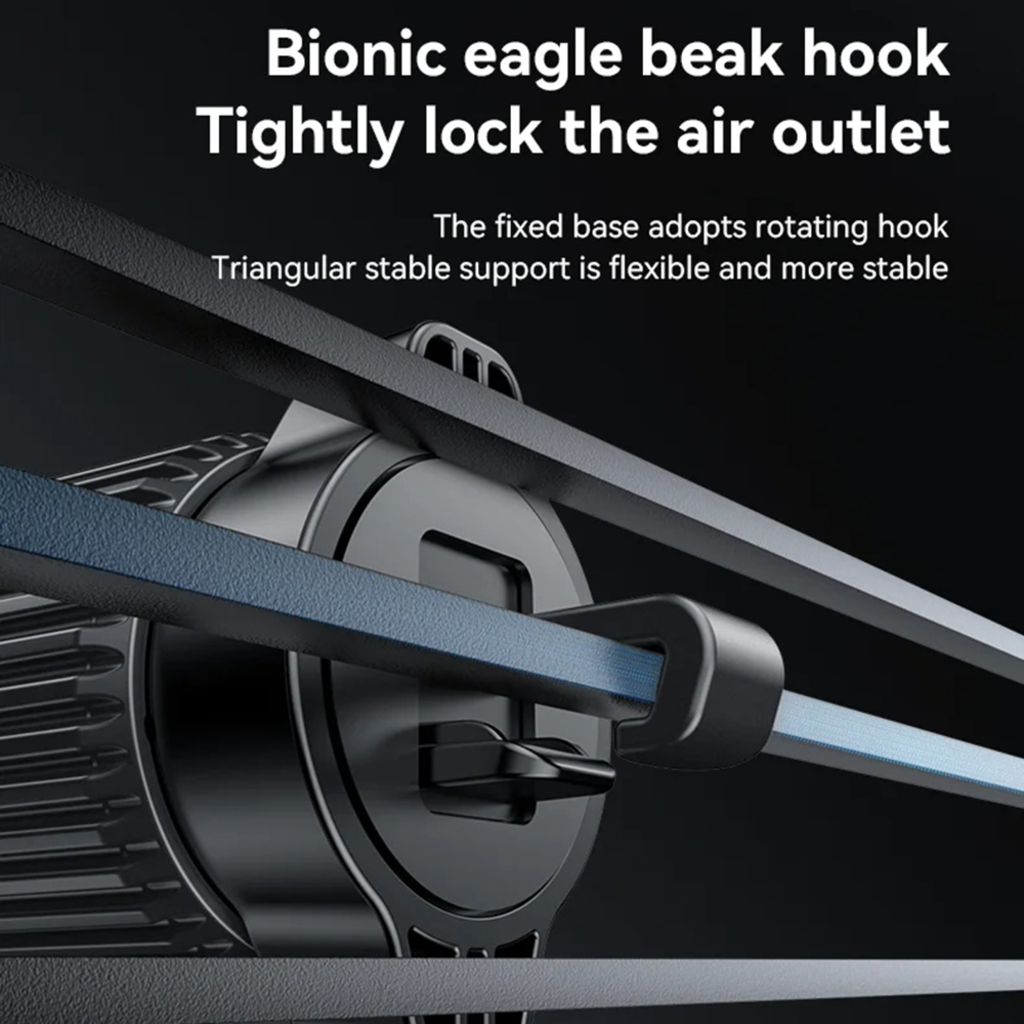 - Az egyedi, bionikus sascsőr kialakítású kampó szorosan záródik a légbeömlő lamelláira, biztosítva a megbízható és stabil illeszkedést.