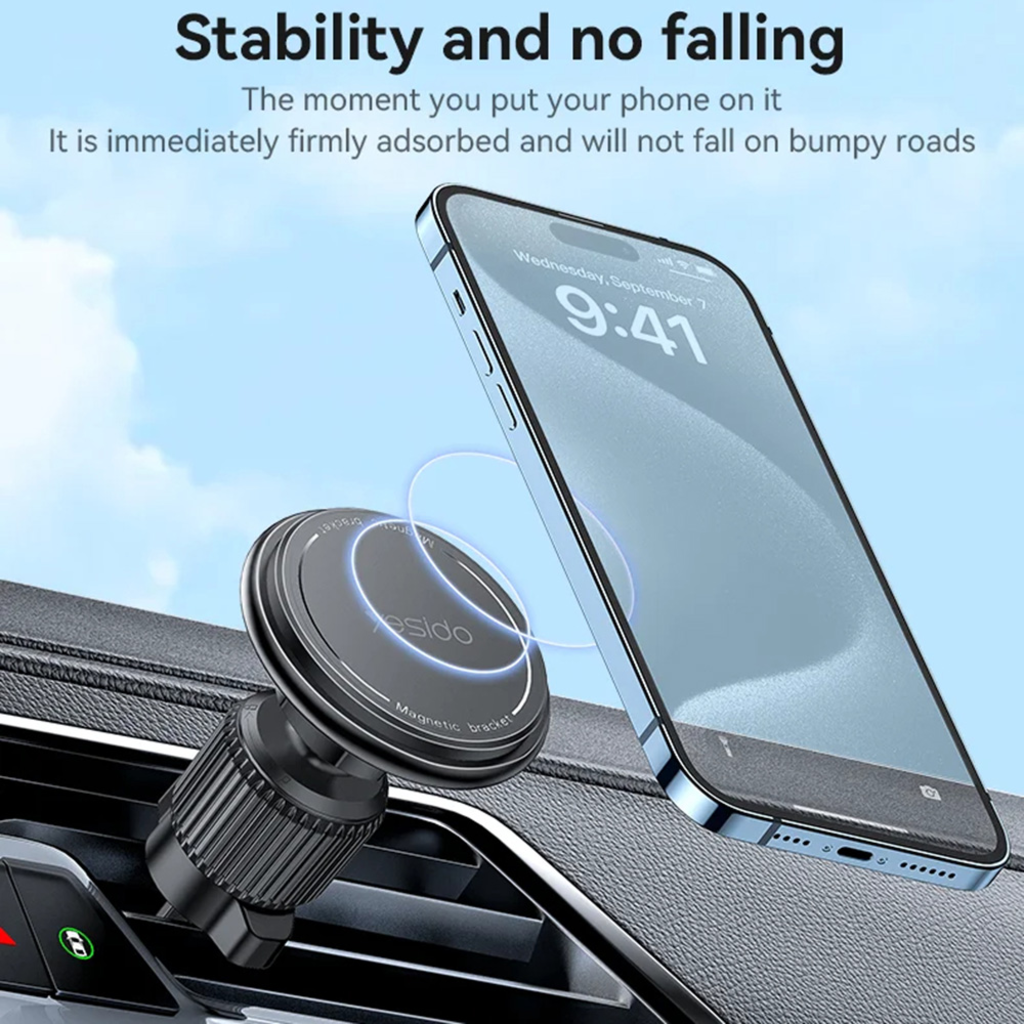 Autós Tartó Yesido - (C252) - Mágneses, Légbeömlőre, 360°, Barb Rögzítő, Széleskörűen Kompatibilis - Fekete