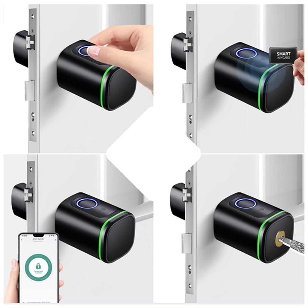 Az SDL-S1-S60 zárbetét négyféle módot kínál az ajtó kinyitására. Az ujjlenyomat gyors és biztonságos felhasználói felismerést biztosít, míg az IC kártya könnyen használható, így alkalmas gyermekek és idősek számára. A Tuya alkalmazás távoli hozzáférés-ellenőrzést tesz lehetővé, míg a hagyományos kulcs vészhelyzeti lehetőségként szolgál.