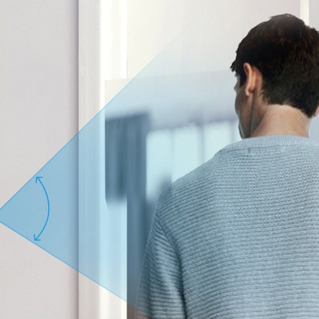 Széles érzékelési szög és pozícióbeállítás A Fresnel-lencse széles érzékelési tartományt biztosít, a mágneses alappal ellátott forgó kialakítás pedig lehetővé teszi az érzékelő szögének pontos beállítását. Az érzékelés hatékonyságának növelése érdekében pontosan egy ajtó, folyosó vagy bejárati terület felé irányíthatja. A készüléket körülbelül 2,2 méteres magasságban ajánlott felszerelni az optimális megfigyelési terület érdekében.