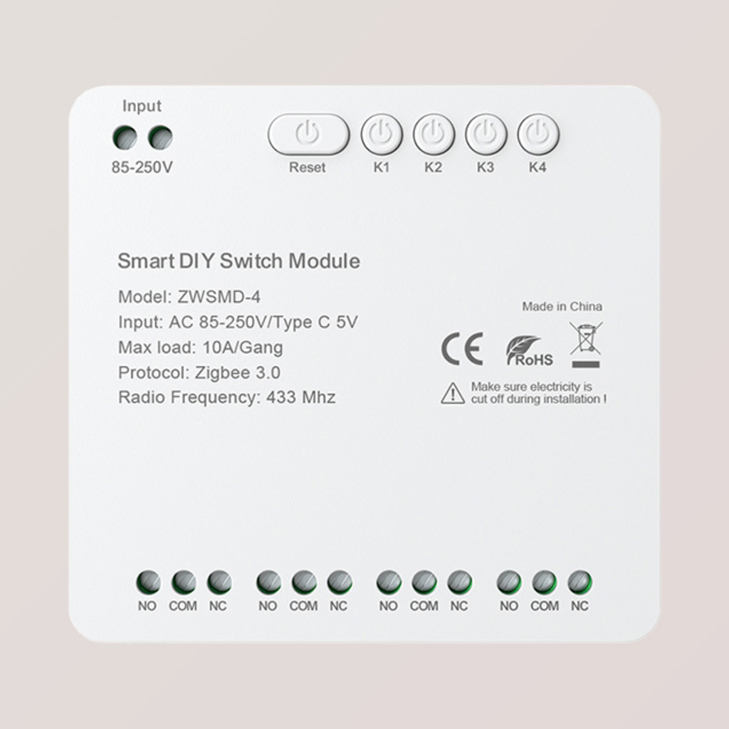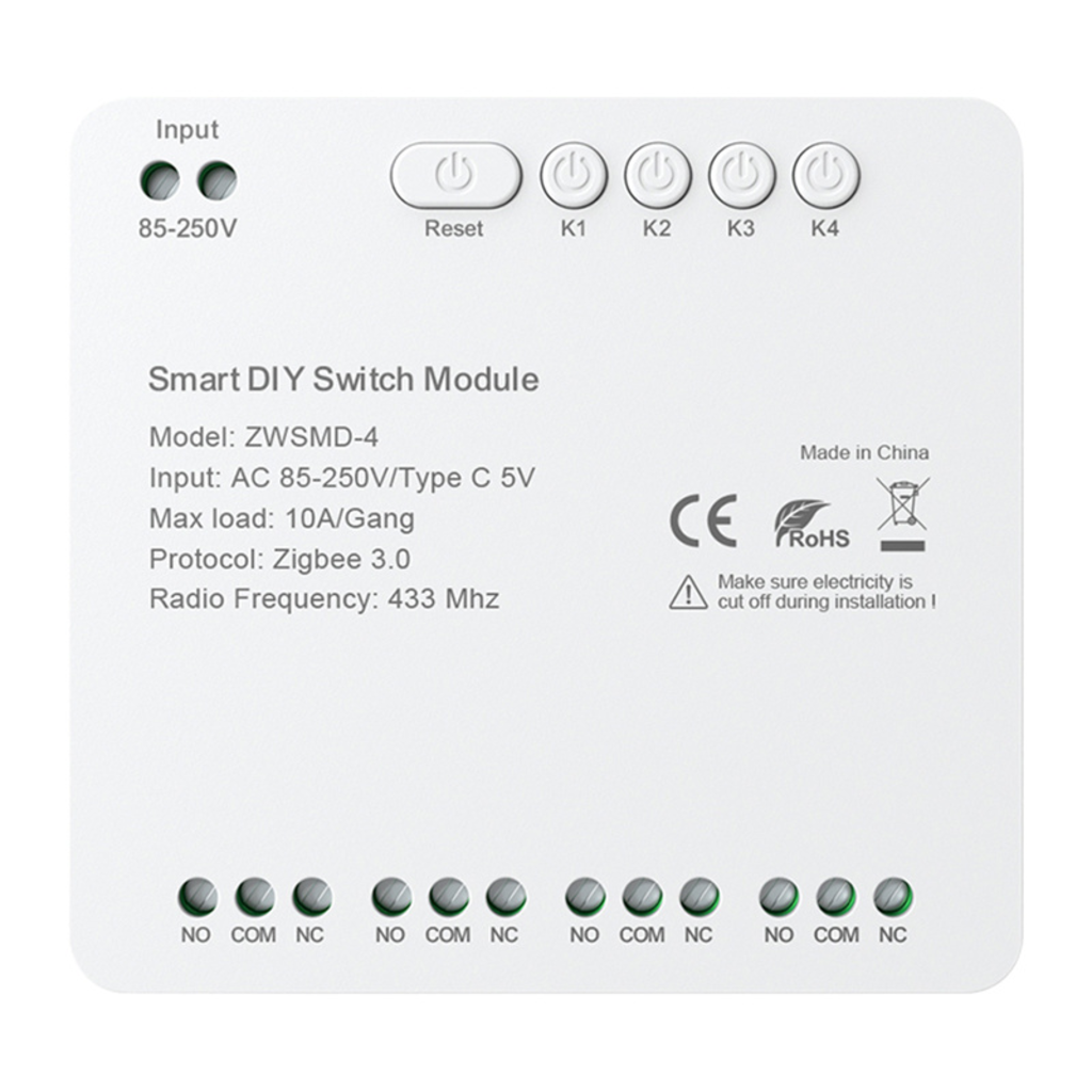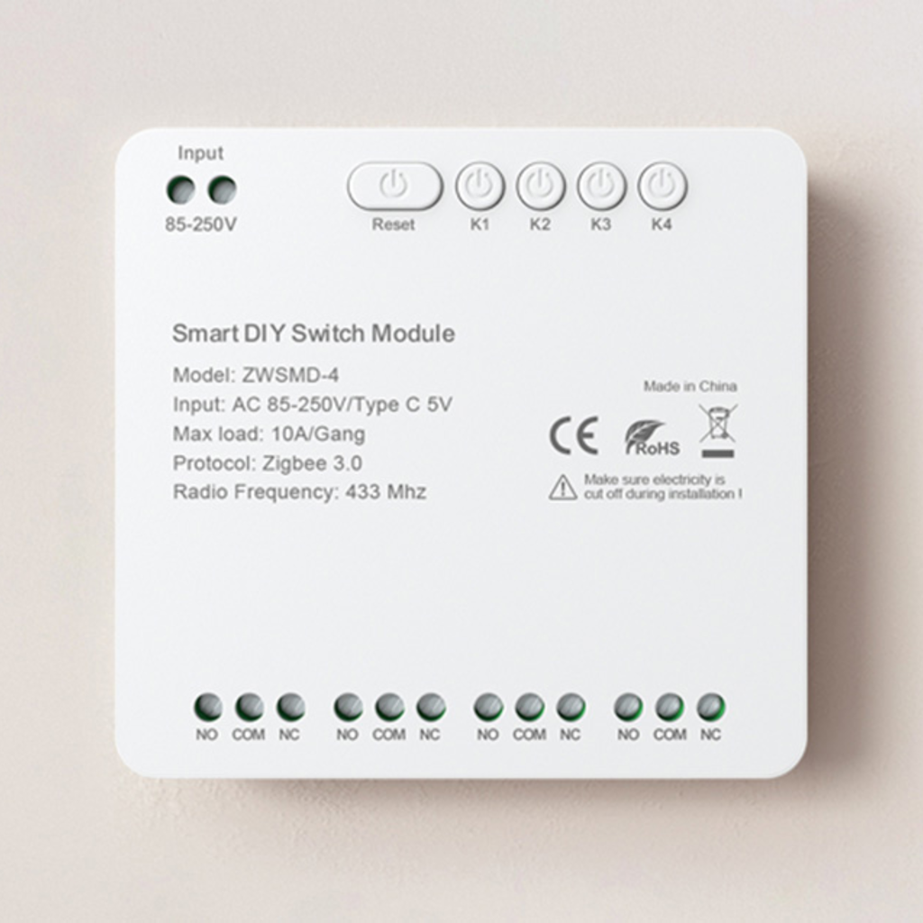 Az Avatto ZWSMMD-4-250V egy 4 csatornás ZigBee kapcsolómodul feszültségmentes érintkezővel, amelyet úgy terveztek, hogy biztonságosan és pontosan kezelje az eszközöket DC 250V-ig. Minden csatorna akár 10 A terhelést is támogat, ami nagy rugalmasságot biztosít a világítás, az otthoni automatizálás vagy a vezérlőrendszerek vezérlésében. A feszültségmentes érintkező használata ideálissá teszi a modult ott, ahol a tápáramkör és a vezérlőjel szétválasztása szükséges.