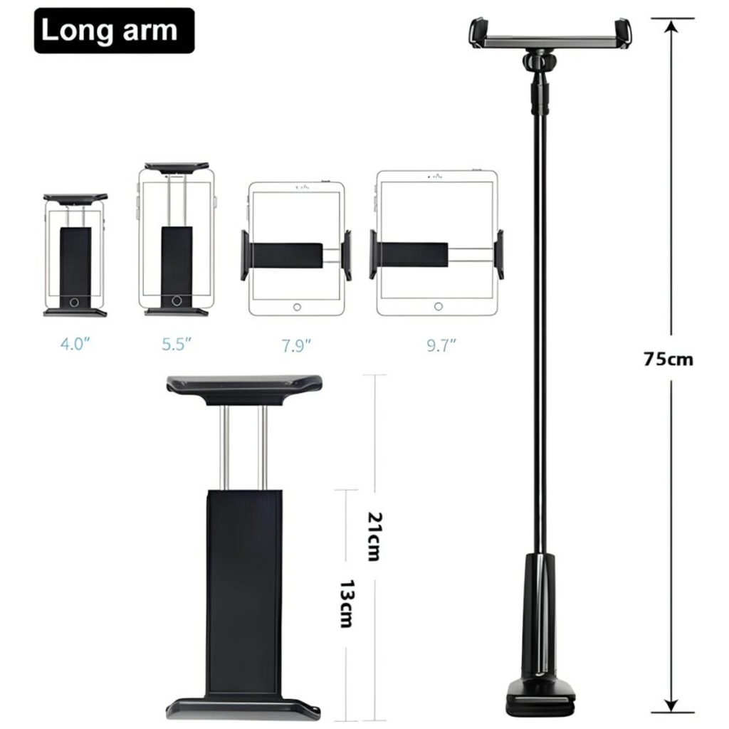 TÖBBFUNKCIÓS HOSSZÚ KAROS TARTÓ. Nagy erővel, 4-6.5 hüvelykes mobiltelefonokra alkalmazható. Tökéletes filmnézéshez és zenehallgatáshoz a hálószobában, főzéshez a konyhában, edzéshez az edzőteremben és munkához az irodában. Finom részletek és kivitelezés, hogy megkönnyítse az életet. Kényelmes tartó, ami felszabadítja a kezed.