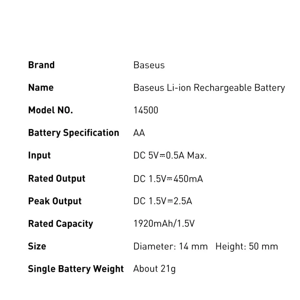 Baseus 2x 1920mAh AA R6 újratölthető elem beépített micro USB töltőporttal fekete és sárga színben (PCWH000211)