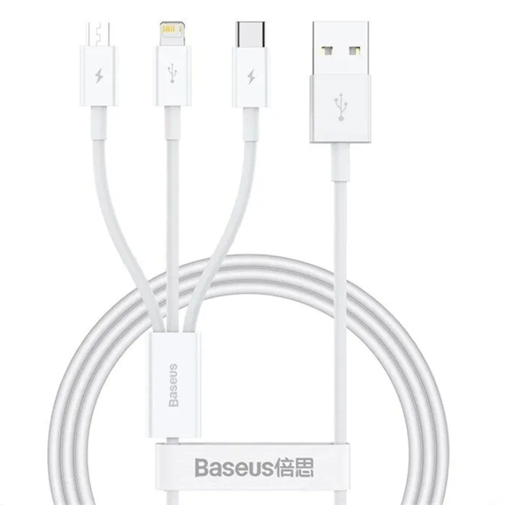 Baseus - Adatkábel Gyors Töltéssel, USB-ről USB-C, Lightning, Micro-USB csatlakozóra, 100W, 480Mbps, 1.5m hosszú - Fehér