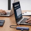 Gyakran másol fájlokat az eszközök között? A Baseus Hub megfelel az elvárásoknak! Stabil és villámgyors adatátvitelt biztosít akár 5 Gbps sebességgel. A dokkolóállomás lehetővé teszi eszközei töltését is akár 100 W-os PD-vel. Több eszköz csatlakoztatása lehetséges, például egér, billentyűzet, táblagép, okostelefon vagy hordozható meghajtó. A HDMI-port kiváló képminőséget kínál 4K@30Hz felbontással. A Hub Ethernet portja gyors és stabil internetkapcsolatot biztosít, így zökkenőmentesen filmezhet vagy játszhat.