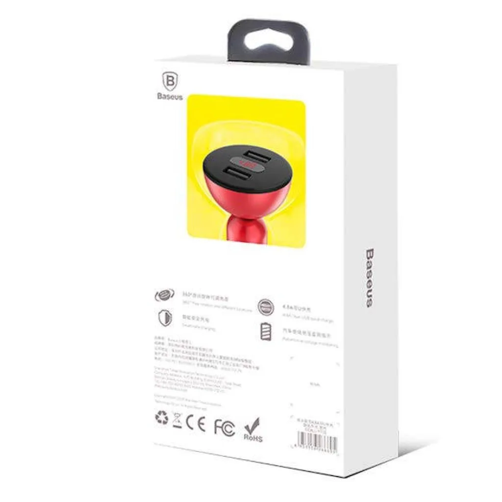 Baseus univerzális szivargyújtós autós töltő 360 fokban dönthető fejjel piros