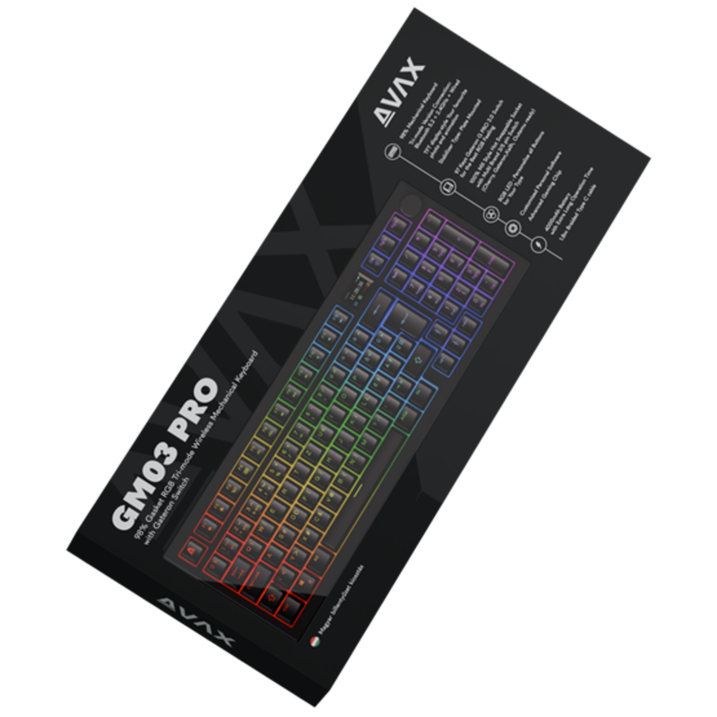 BIL AVAX GM03 PRO 98% Gasket RGB tri-mode mechanikus billentyűzet Gateron piros switch, magyar kiosztás