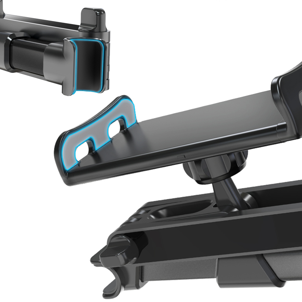 - Tökéletes a hátsó utasok számára – Lehetővé teszi egy tablet vagy okostelefon rögzítését a fejtámlán, kényelmes filmezési és alkalmazáshasználati lehetőséget biztosítva utazás közben.