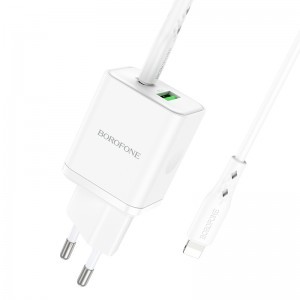 Borofone BN7 hálózati töltő adapter USB+Type C QC 3.0 PD 20W + Type C - Lightning kábel fehér