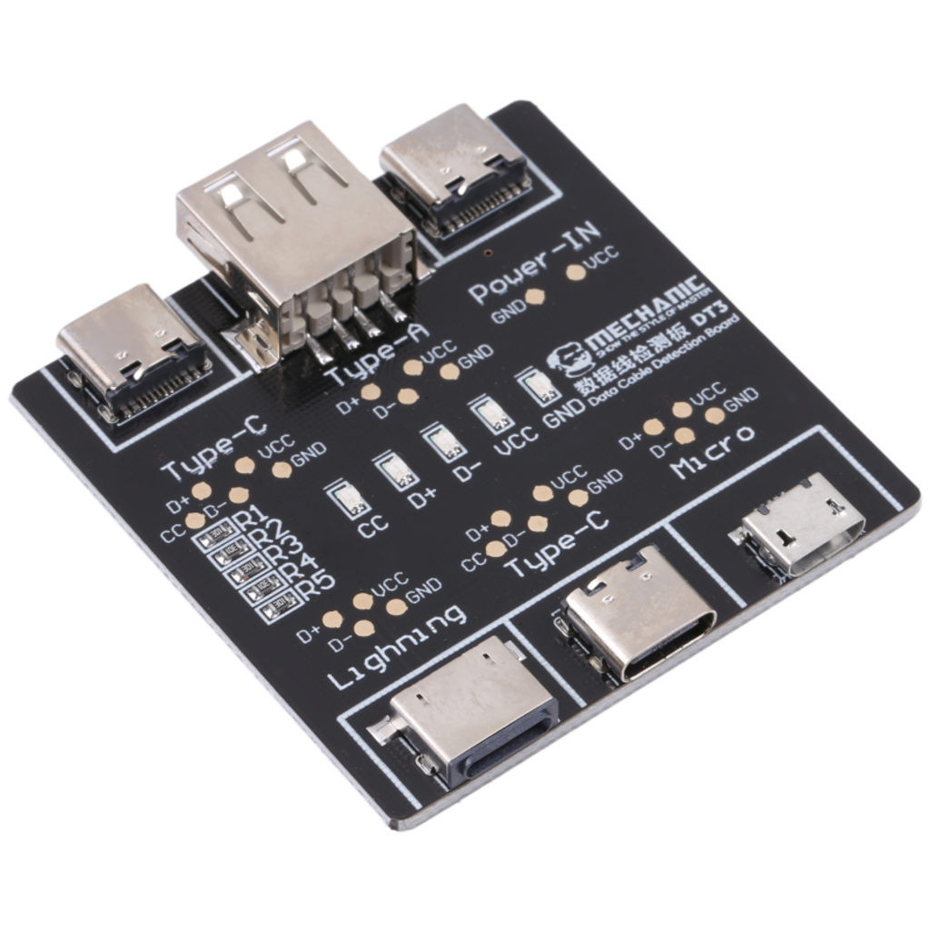 A Mechanic DT3 Szerviz Tesztelő egy kompakt és hatékony eszköz Lightning, USB-C és microUSB töltő- és adatkábelek gyors ellenőrzéséhez. Az ultra-könnyű kialakítás ellenére a DT3 erőteljes teljesítményt nyújt, az intuitív LED jelzőfények segítségével azonnal felismeri a töltési vagy adatátviteli problémákat. Ideális javítástechnikusoknak vagy elektronikai rajongóknak, akik gyors és pontos kábeltesztelő megoldást keresnek. A DT3 automatikusan érzékeli a kimeneti feszültséget és áramot (5V, 1A), és LED-ekkel jeleníti meg a VCC, GND, D+, és D- vonalak állapotát. Kétoldalú Type-C kábelek esetén a CC vonalat is ellenőrzi. A működtetése egyszerű: csak csatlakoztassa a kábelt és azonnal láthatja, hogy működik-e.