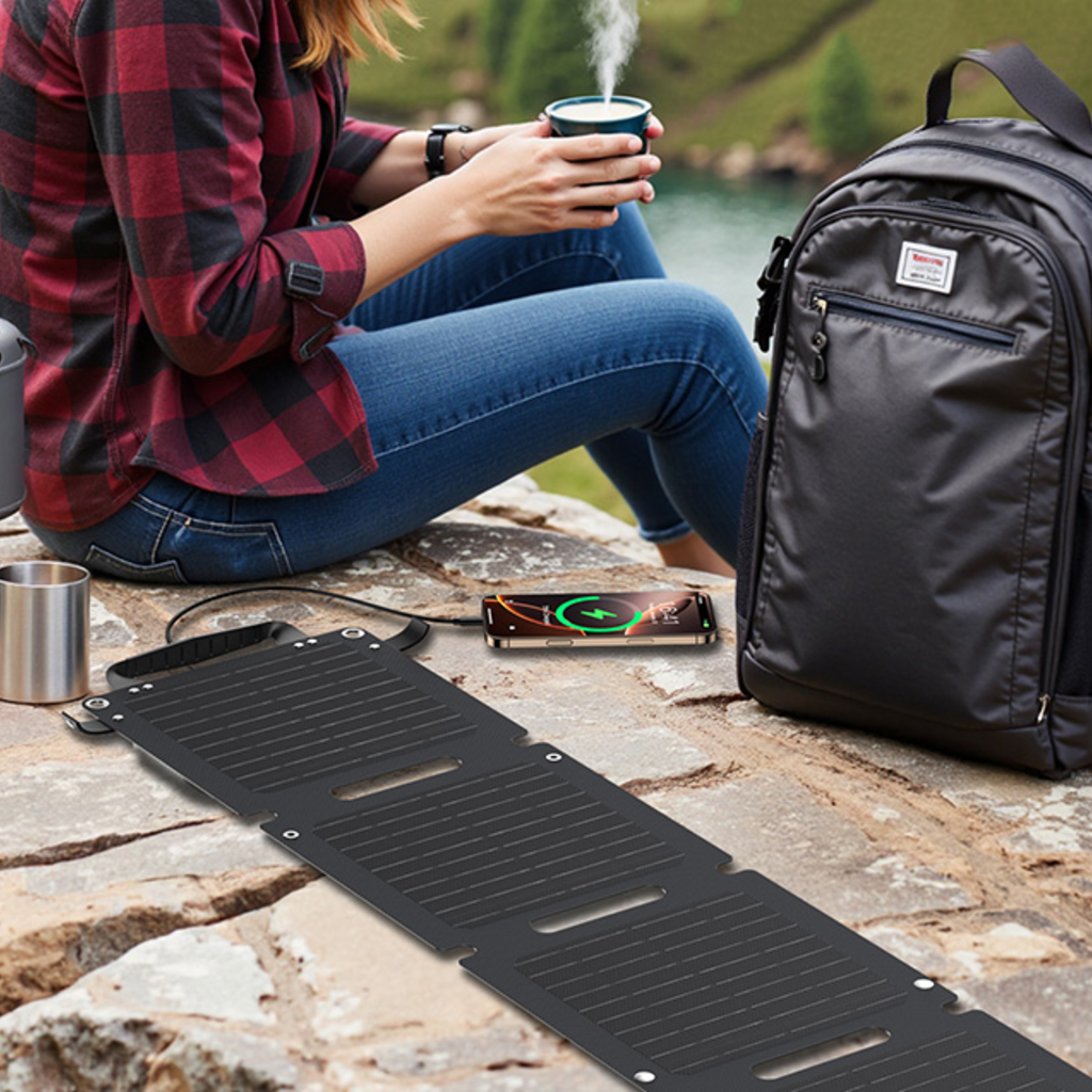 Magas energiaátalakítási hatékonyság: A napelem 23%-os energiaátalakítási arányt ér el, így még részben felhős időben is hatékonyan töltheti készülékeit. Ez kevesebb energiaveszteséget és gyorsabb töltést jelent - anélkül, hogy a paneleket folyamatosan a naphoz kellene igazítani.