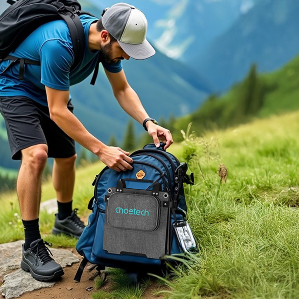 A Choetech SC005-GY egy 28W-os hordozható napelemes töltő, amelyet utazók, kempingezők és bárki számára terveztek, akinek megbízható áramforrásra van szüksége az otthonán kívül. Összecsukható kialakításának és strapabíró anyagainak köszönhetően jól működik a hegyekben, valamint egy kempingezés vagy egy hosszabb kirándulás során a városon kívül is.