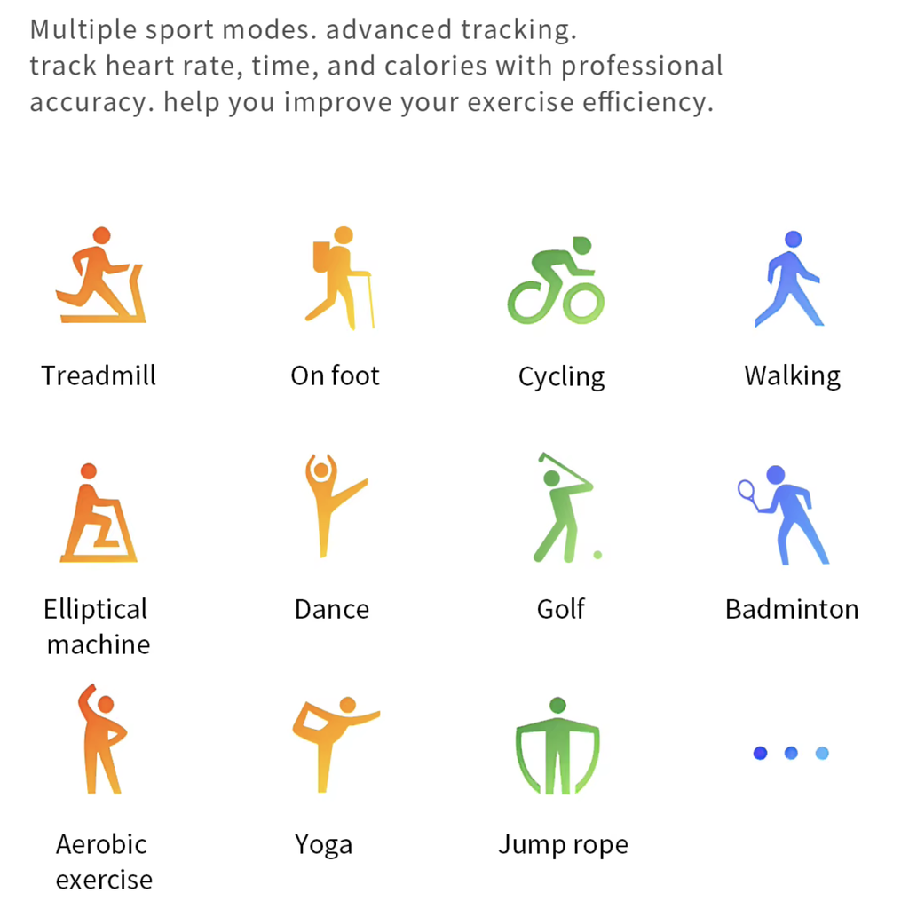 - 100+ sportmód: Akár futópadon edz, gyalogol, kerékpározik, táncol, golfozik, tollaslabdázik, jógázik, vagy ugatókötelezik, az óra professzionális pontossággal követi a szívritmust, időt és elégetett kalóriákat.
