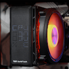 Az optimális légáramlásért egy dinamikusan szabályozható 120 mm-es PWM ventilátor felel, melynek fordulatszáma 800 és 2000 RPM között mozog, alkalmazkodva a rendszer aktuális hűtési igényeihez. A ventilátor hidrodinamikus csapágyazása garantálja a rendkívül csendes működést – maximális terhelés mellett is csupán 37,48 dBA zajszinttel –, valamint kiemelkedően hosszú, 40 000 órás élettartamot biztosít. A ventilátor lapátjai úgy lettek kialakítva, hogy egyenletesen oszlassák el a beépített ARGB háttérvilágítás fényeit, amely könnyedén szinkronizálható a vezető alaplapgyártók rendszereivel, mint például az ASUS Aura Sync, MSI Mystic Light, Gigabyte RGB Fusion és ASRock Polychrome, így tökéletes harmóniát teremthet gépe többi komponensével. Fontos megjegyezni, hogy az ARGB világítás 5V-os, 3-tűs csatlakozón keresztül működik, és nem kompatibilis a 12V-os RGB rendszerekkel.