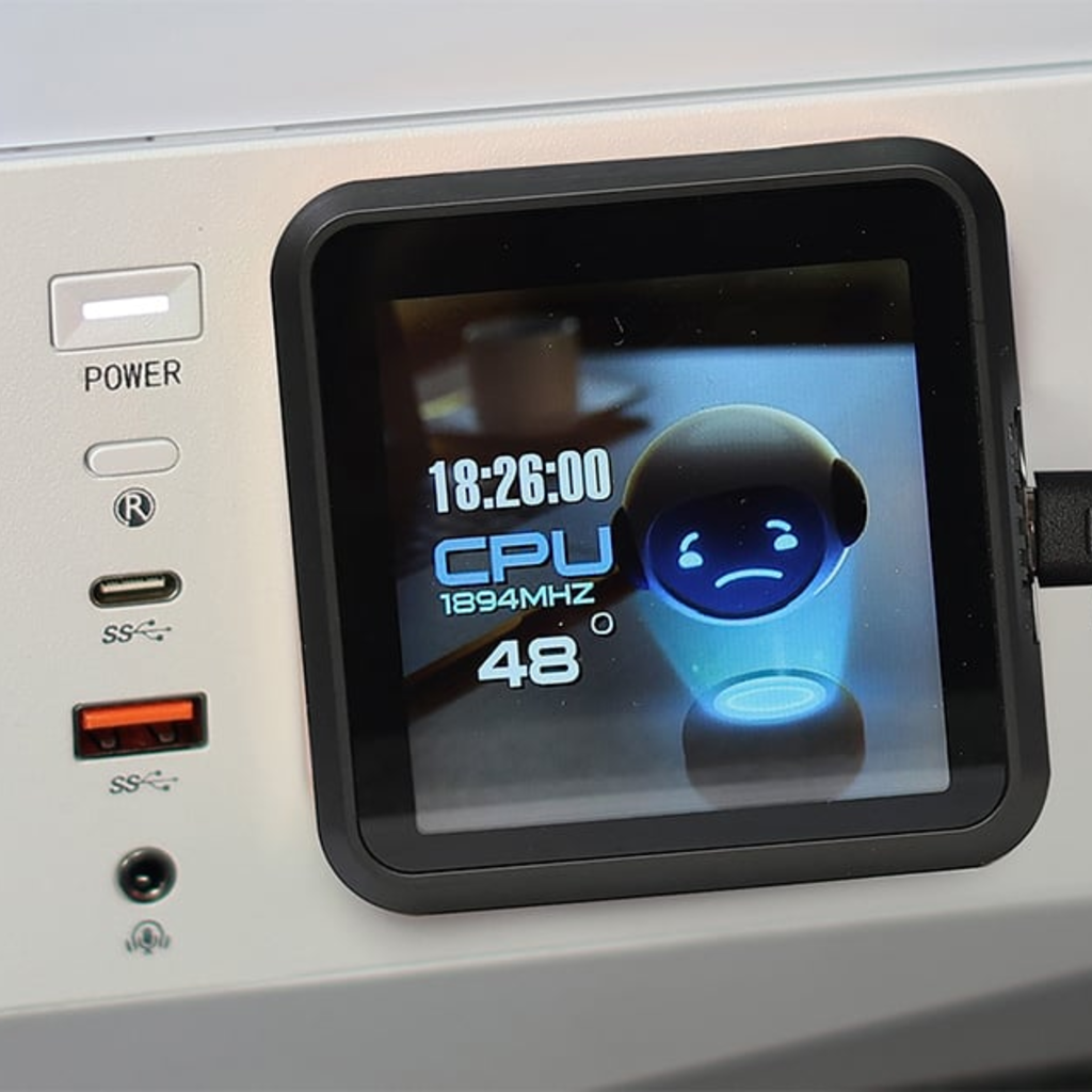 IPS képernyő felügyeleti funkcióval A vizesblokkba integrált 2,88 hüvelykes (480×480 px) IPS-képernyő segítségével valós időben nyomon követheti a CPU hőmérsékletét, a ventilátor sebességét, az órákat vagy az üzemmódokat. Mágneses rögzítésének köszönhetően levehető és máshová - például a ház elejére - is felszerelhető. A megjelenített információk testreszabása saját fejlesztésű szoftverrel történik, amely támogatja a témákat, az eszközök közötti szinkronizálást és az AR-vizualizációt.