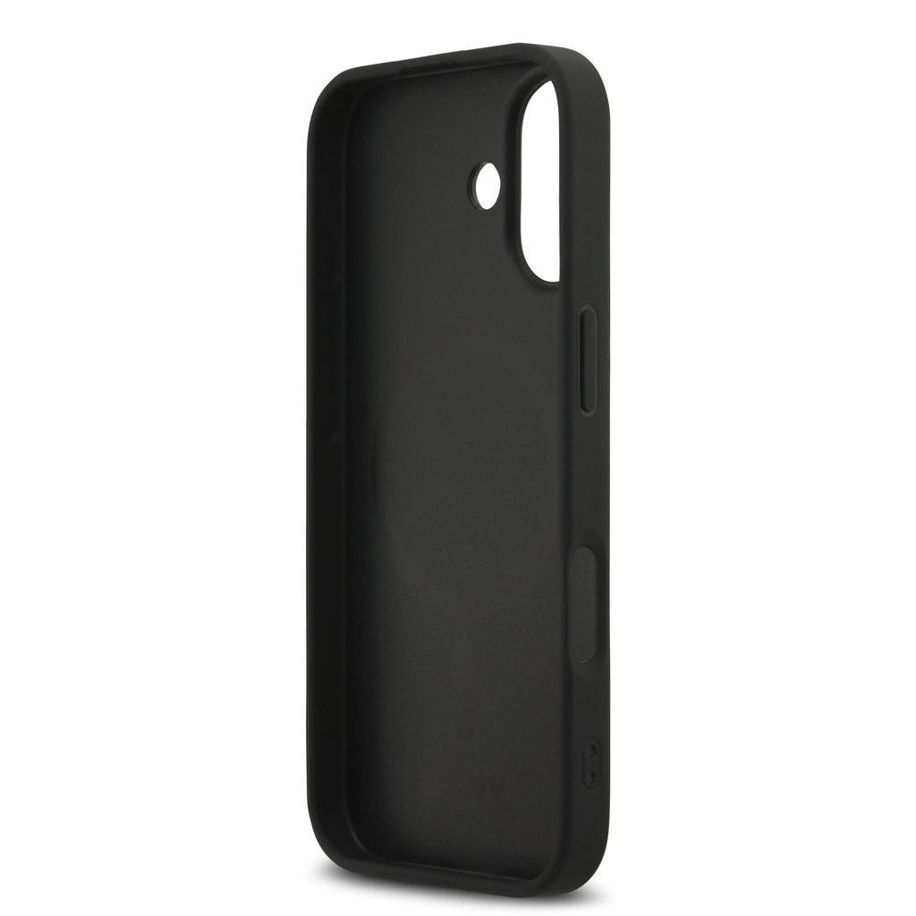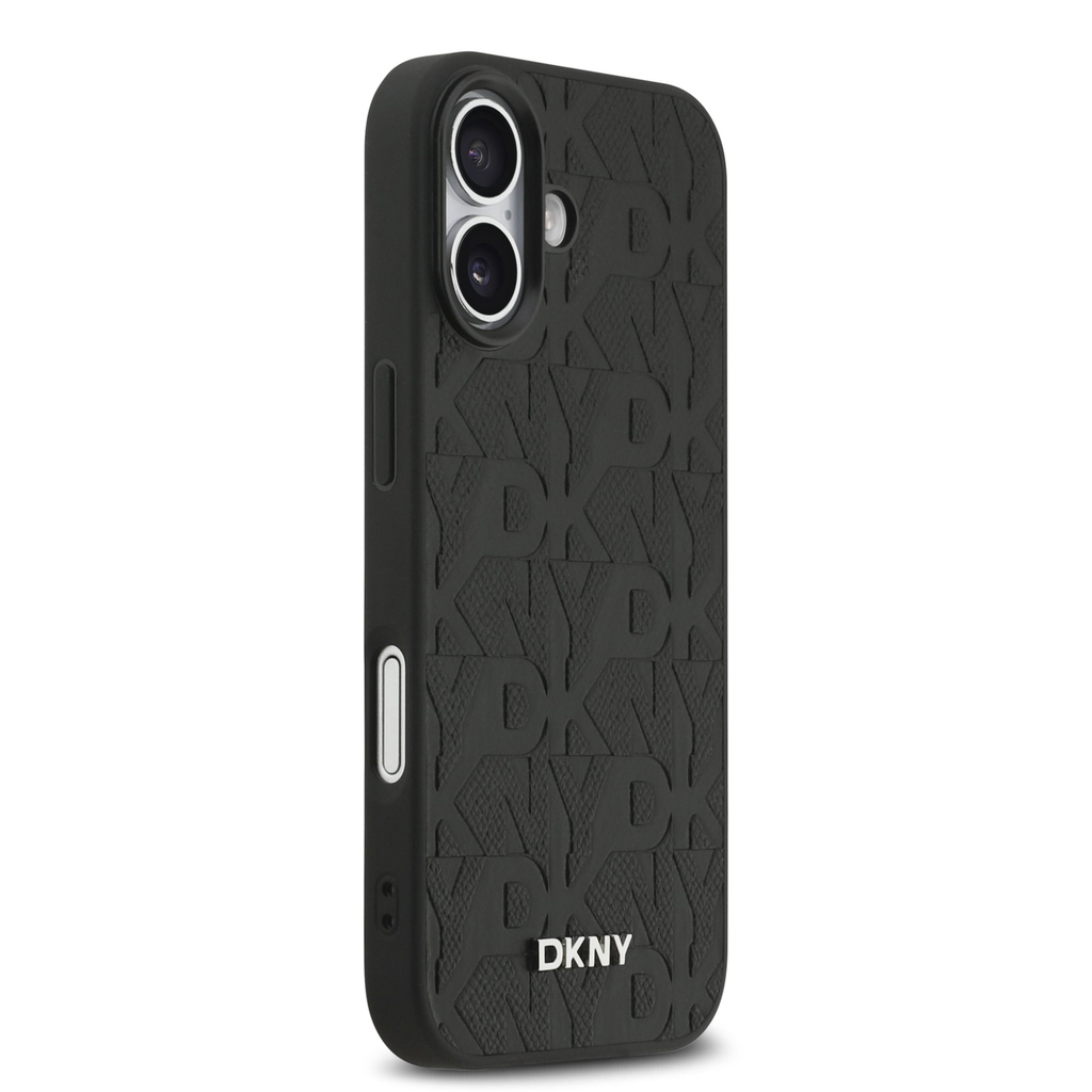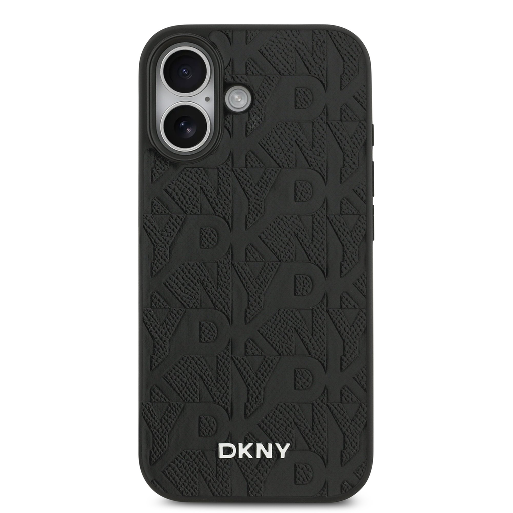 A DKNY PU Bőr Rácsmintás Magsafe tok ismétlődő "DKNY" logóval rendelkezik, amely elegáns grafikus hatást kelt.