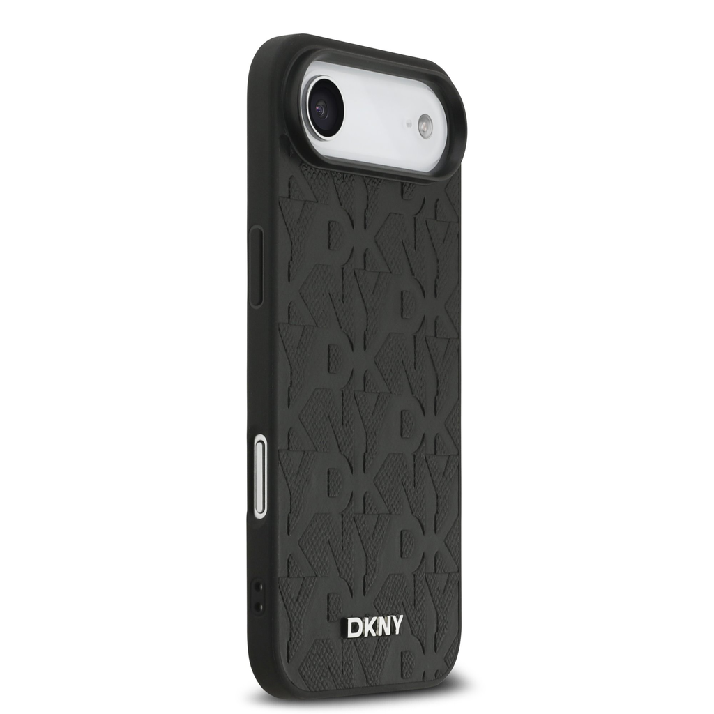 iPhone 17 Air fekete DKNY PU bőrhuzatos rácsmintás Magsafe tok