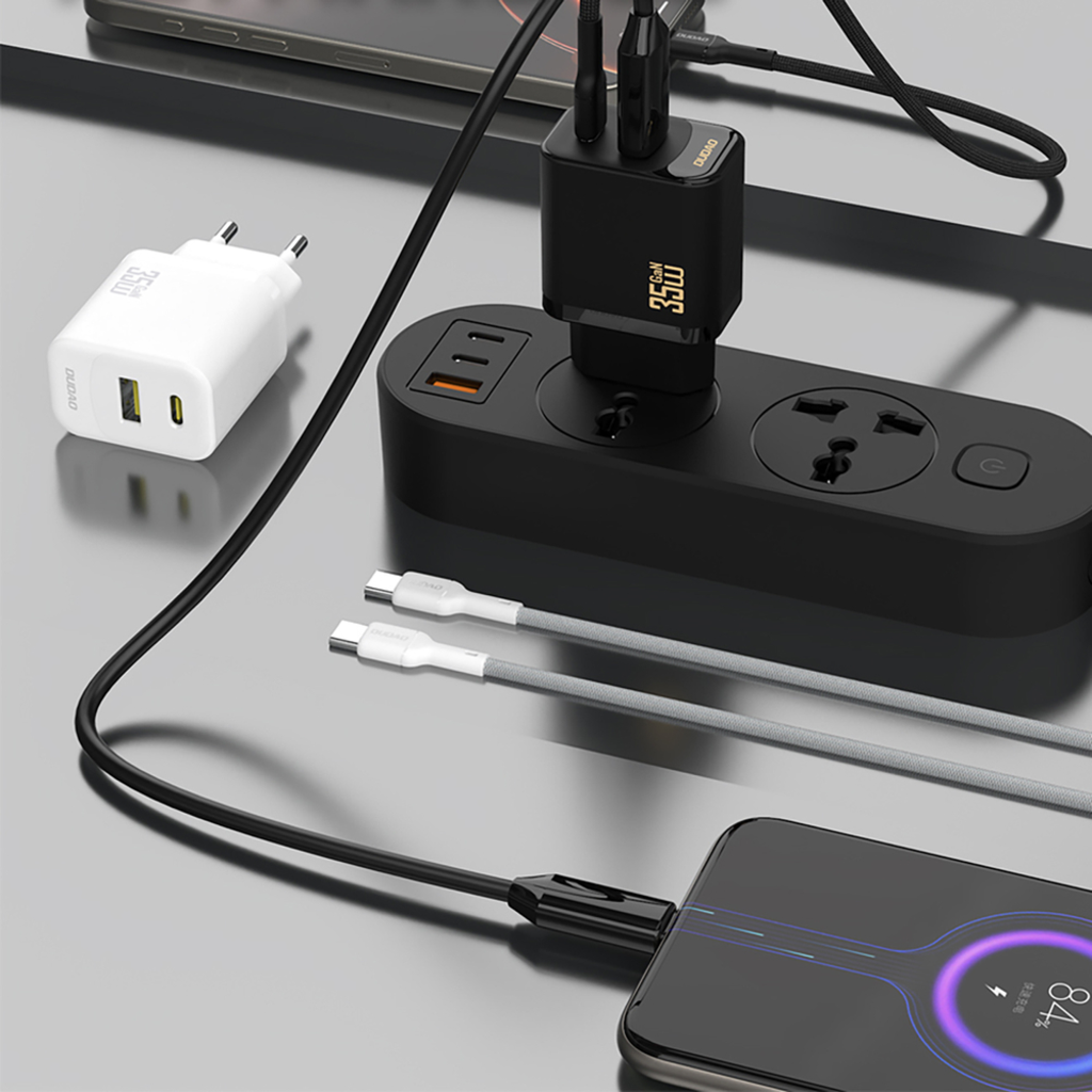 - Csomag tartalma: 1 db Dudao A27 MaxC 35W GaN fali töltő, 1 db 1 méteres fonott USB-C kábel