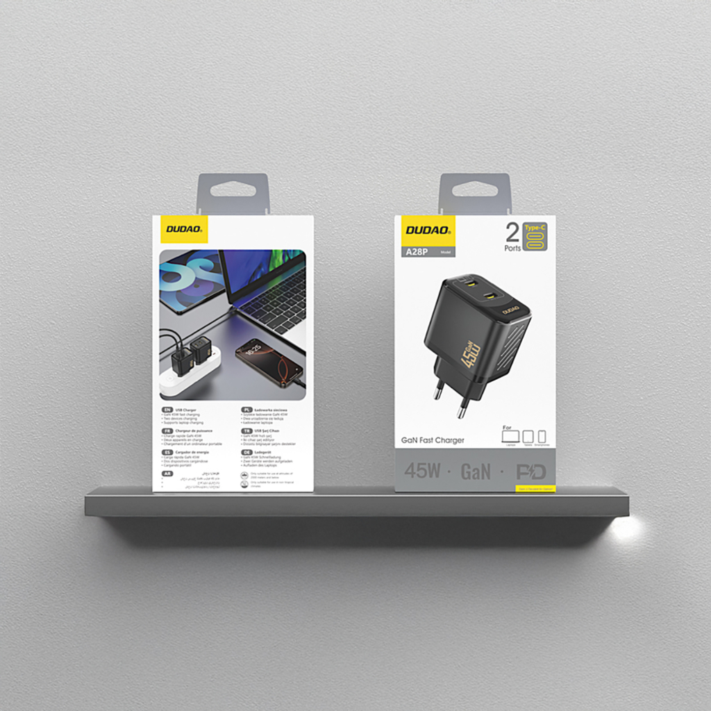 A Dudao A28PEU PD 45W GaN 2x USB hálózati töltő a modern felhasználók ideális választása, akik sebességet, hatékonyságot és megbízhatóságot várnak el egyetlen kompakt eszközben.