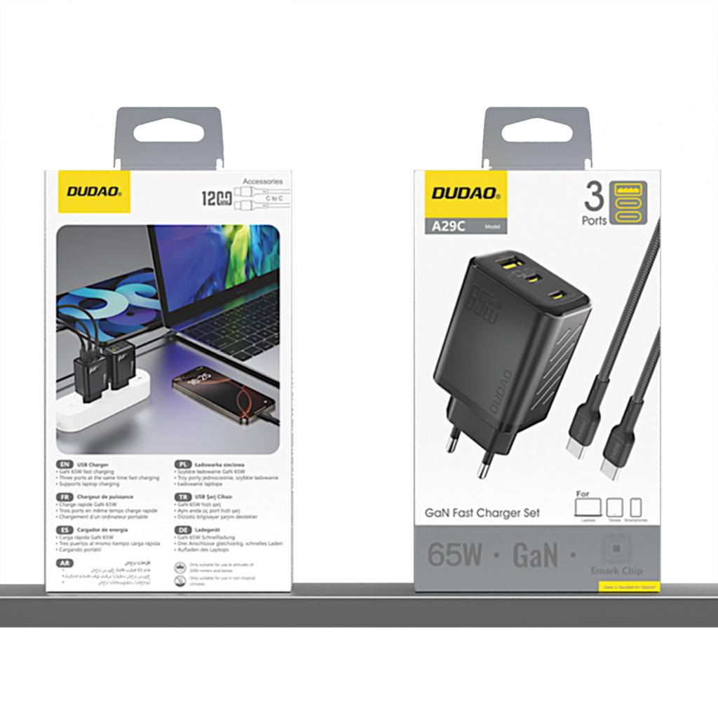 Dudao A29C 65W GaN Töltőadapter + USB-C Kábel - Fekete