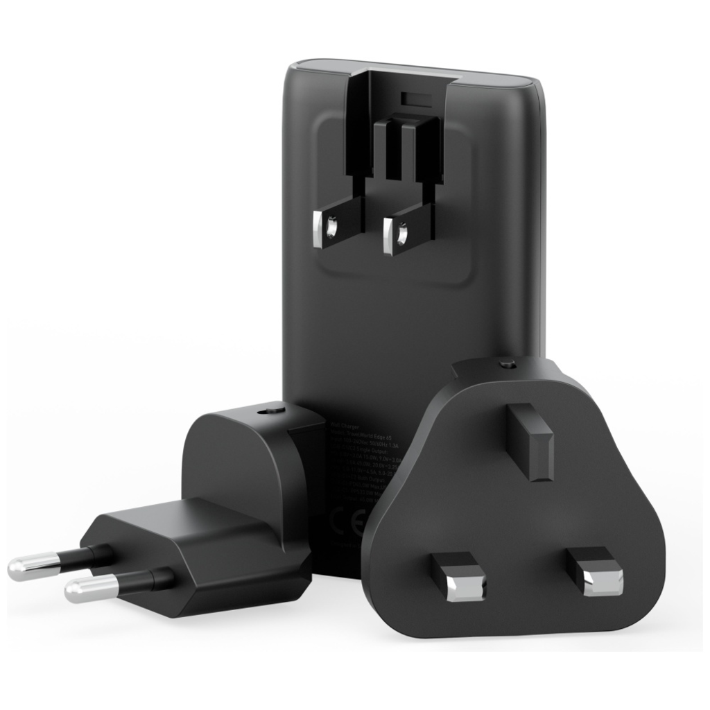 Energea TravelWorld Edge 65W 2xUSB-C PD/PPS/QC3.0 Hálózati USB-C töltő adapter (US/UK/EU) grafit