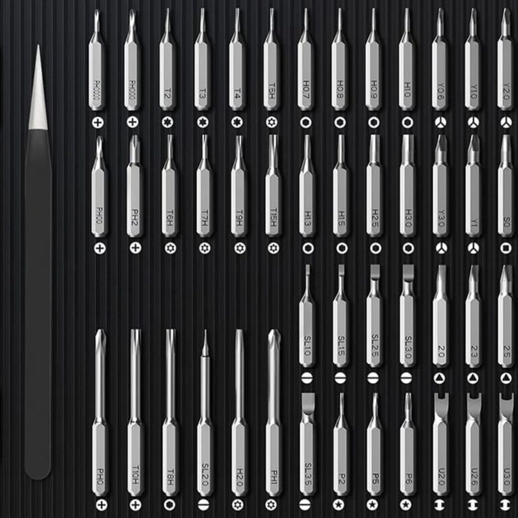 Tartalmazza a -csipesz -USB-A-ból USB-C-be csatlakozó kábel -használati útmutató -aláásó szerszám -elektromos precíziós csavarhúzó -mágneses tok a bitek tárolásához -x50 bit -alumínium ötvözetből készült tok
