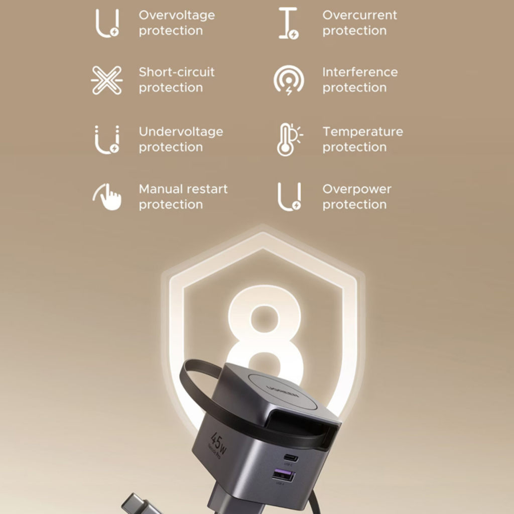 Fali töltő UGREEN X614, 45W, 3A, 1 x USB-A - 1 x USB-C, USB-C kábellel, Szürke