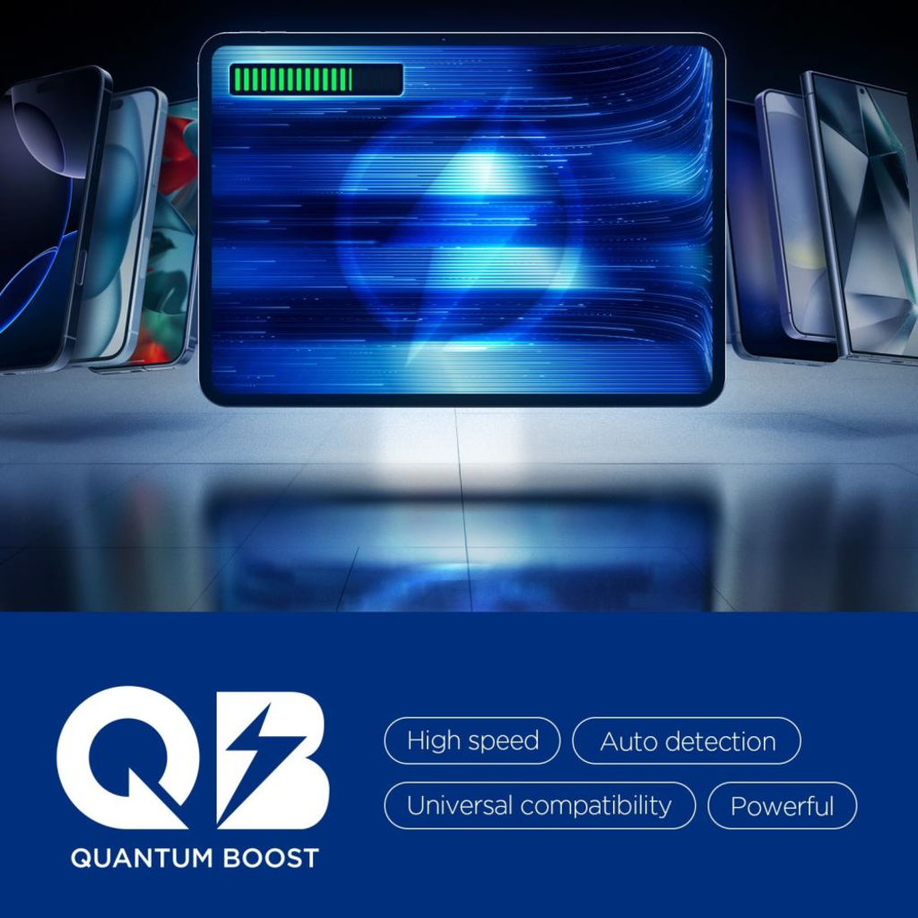A beépített Quantum Boost (QB) technológia forradalmasítja a töltési élményt. Ez az intelligens rendszer automatikusan felismeri a csatlakoztatott eszközöket és azok töltési igényeit, majd dinamikusan igazítja a leadott teljesítményt, maximalizálva a hatékonyságot és jelentősen csökkentve a töltési időt. Élvezze a nagy sebességű, automatikus felismerésen alapuló, univerzálisan kompatibilis és erőteljes töltést.