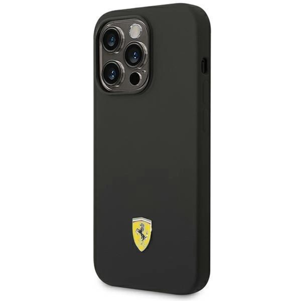 Ferrari FEHCP14LSIBBK iPhone 14 Pro 6.1" fekete/fekete szilikon tok metal logo