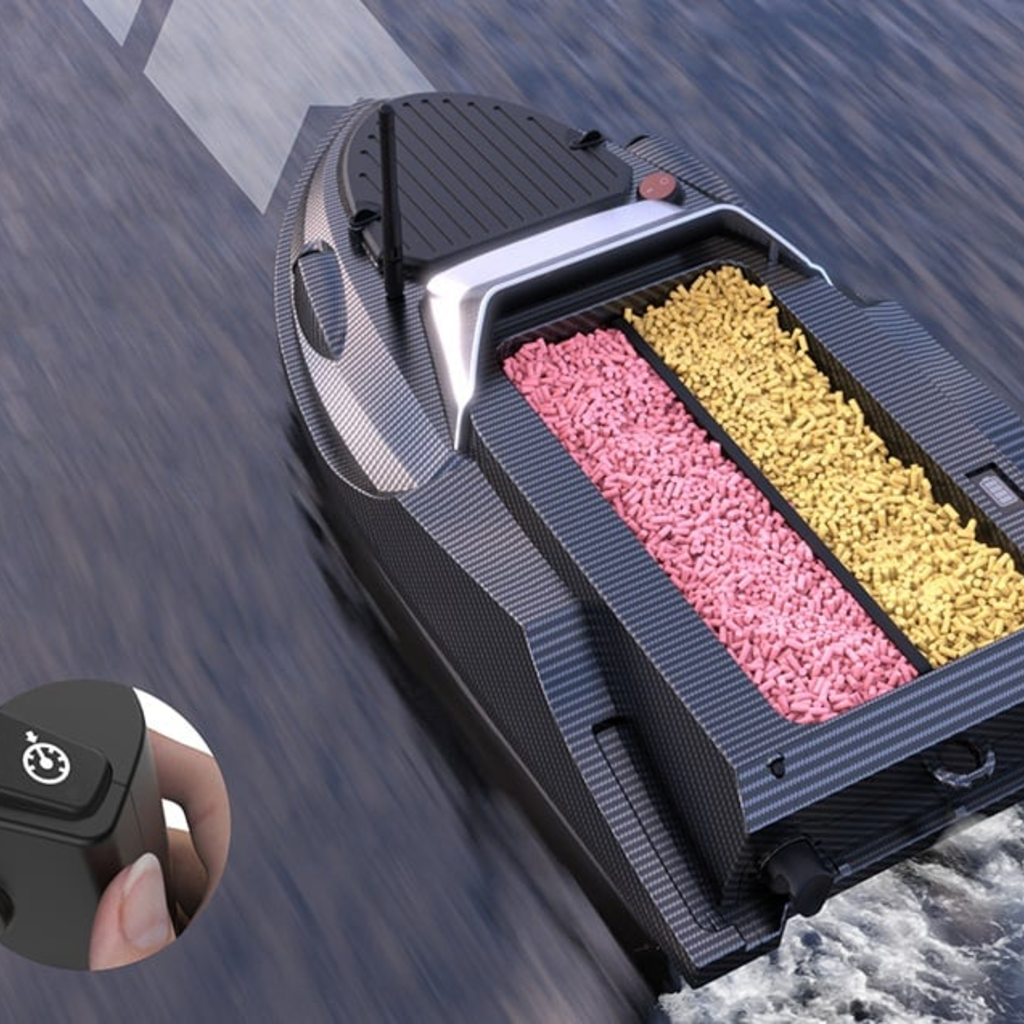 Csalizás precízen és változatosan Az akár 3 kg összkapacitású dupla tartály lehetővé teszi, hogy egyszerre kétféle csalit öntsön ki. Így kombinálhatja a stratégiákat és növelheti a horgászat vonzerejét anélkül, hogy minden alkalommal vissza kellene térnie a partra.