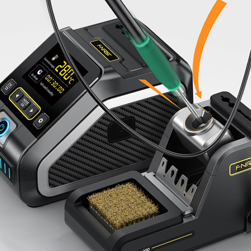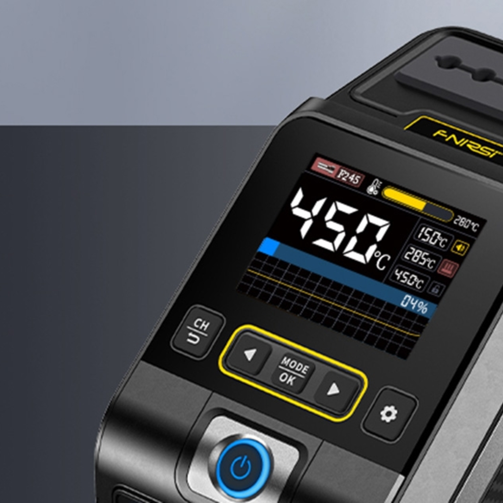 Az FNIRSI DWS-200 F egy fejlett forrasztóállomás, amely a 200 wattos teljesítményt intelligens hőmérséklet-szabályozással és azonnali felmelegítéssel kombinálja. A 2,8"-os színes TFT-képernyővel könnyedén nyomon követheti a hőmérsékletet valós időben a három megjelenítési mód egyikében. A gyors felfűtési (1 másodperc) és olvadási (3 másodperc) idővel időt takarít meg és növeli a termelékenységet, a PID-rendszer pedig 100°C-tól 450°C-ig biztosítja a hőmérséklet stabilitását.