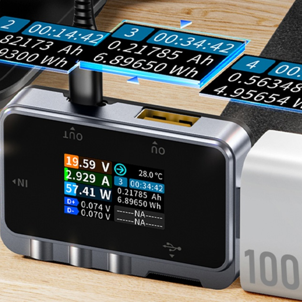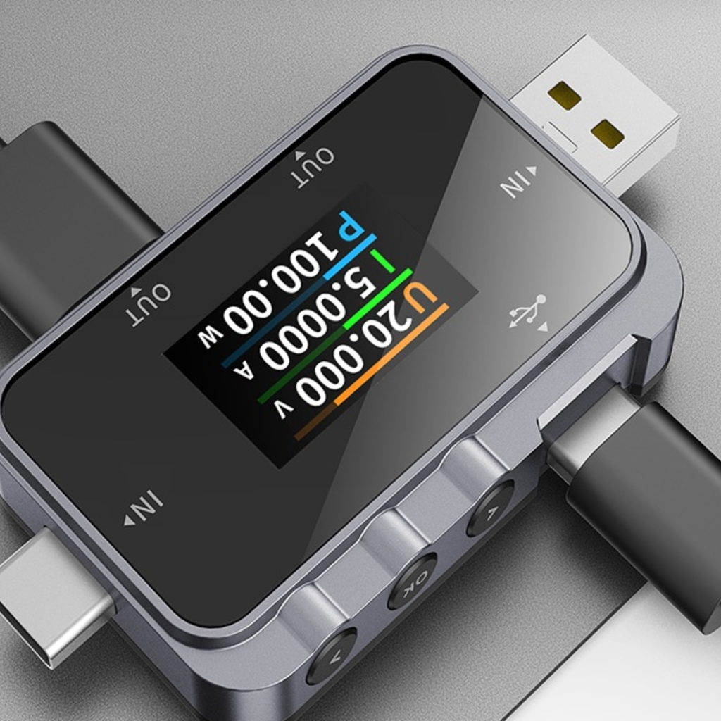 Az FNIRSI FNAC-28 egy sokoldalú USB-A és USB-C csatlakozó tesztelő, amely egyetlen kompakt eszközben egyesíti a feszültség, az áramerősség, a teljesítménymérő funkciót és a gyorstöltés támogatását. Töltők, kábelek, powerbankok és egyéb USB-portokról táplált eszközök tesztelésére tervezték. A 2 mérési bemenetnek köszönhetően a tesztelő lehetővé teszi a különböző típusú kábelek és eszközök töltési paramétereinek egyidejű vizsgálatát, ami növeli a sokoldalúságát. A színes OLED-képernyő megjeleníti az összes kulcsfontosságú adatot: bemeneti feszültség, áram és áramerősség. Ezek a leolvasások valós időben láthatók és könnyen elérhetők a készülékházon található intuitív menü- és funkciógomboknak köszönhetően.